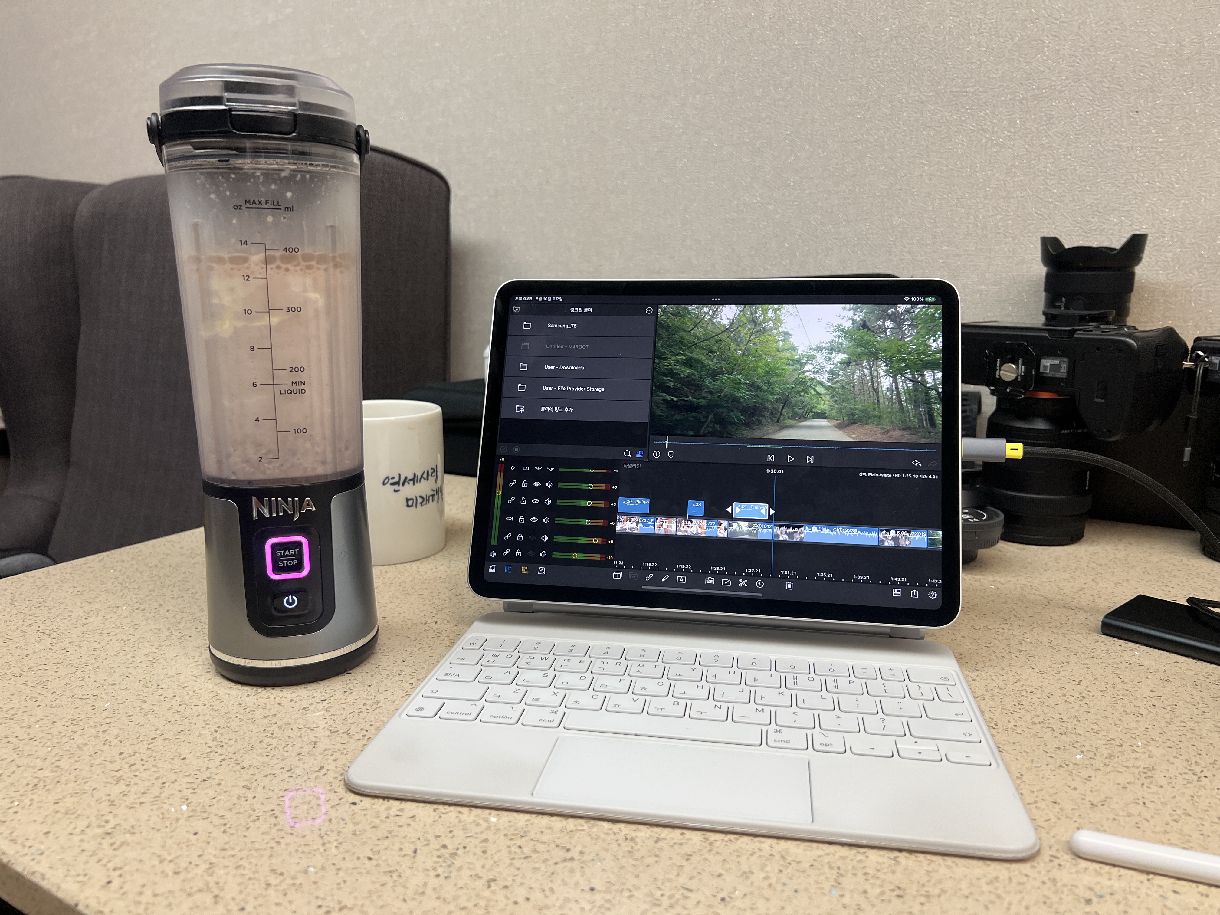 보통 아침식사 대신으로 닭가슴살 쉐이크를 만들어 마시느라 유선 믹서기를 쓰고 있는데, 언제부터인가 무선으로 된 블렌더가 유독 눈에 띄었으니 그게 닌자 블렌더.