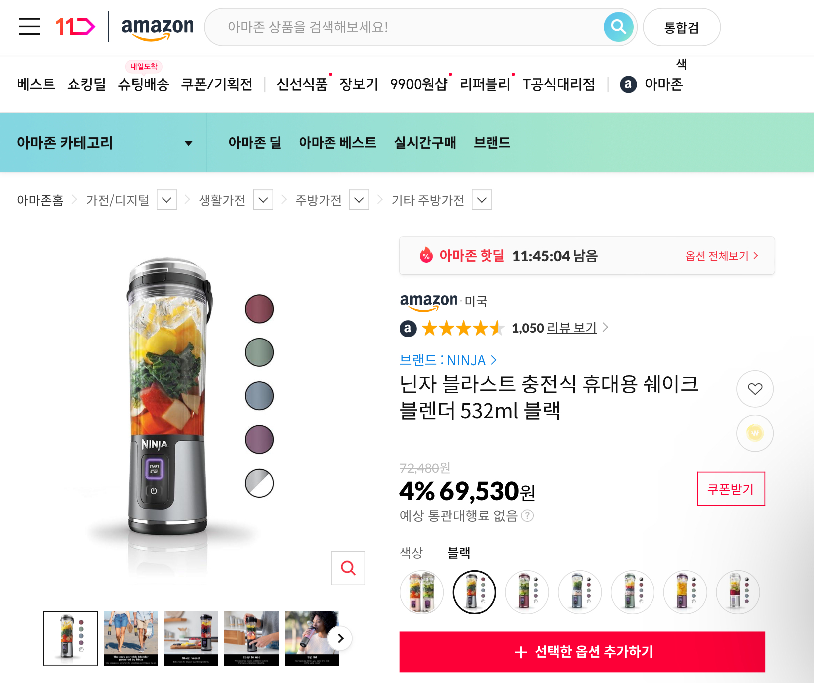 국내에서 보통 12-14만원 선에서 판매되는 걸로 보여, 생각보다 비싸기도 하고, 휴대용으로 얼마나 쓸까 싶어 애써 무시했던 블렌더인데, 11번가 아마존으로 너무 싸게 나오는 바람에 유혹을 참지 못하고 질러 버렸다.