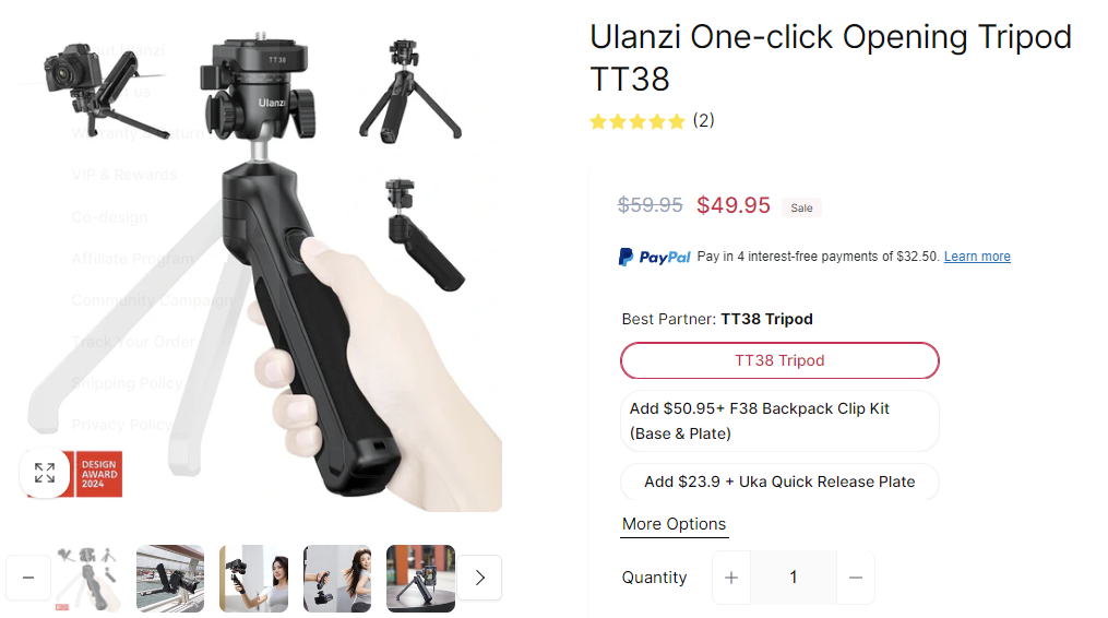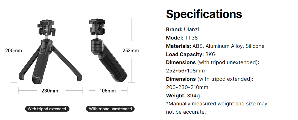 * 제품 상세 페이지 : https://www.ulanzi.com/collections/travel-tripods/products/tabletop-vlog-tripod-tt38