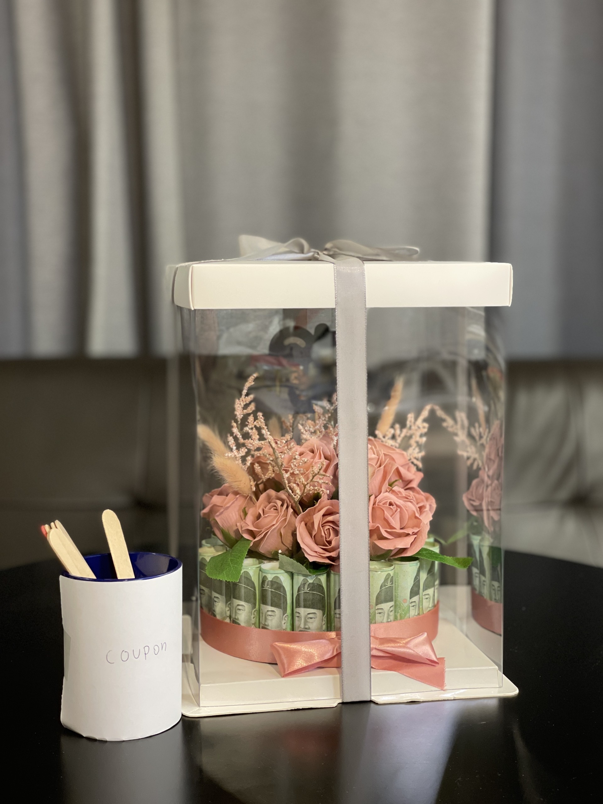 연주가 직접 만든 돈 케잌과 연준이의 쿠폰 선물. 늘 그렇듯 연준이는 돈 대신 이벤트로 때움. ㅎㅎ 일찍 철든 연주와 여전히 애기같은 연준이.