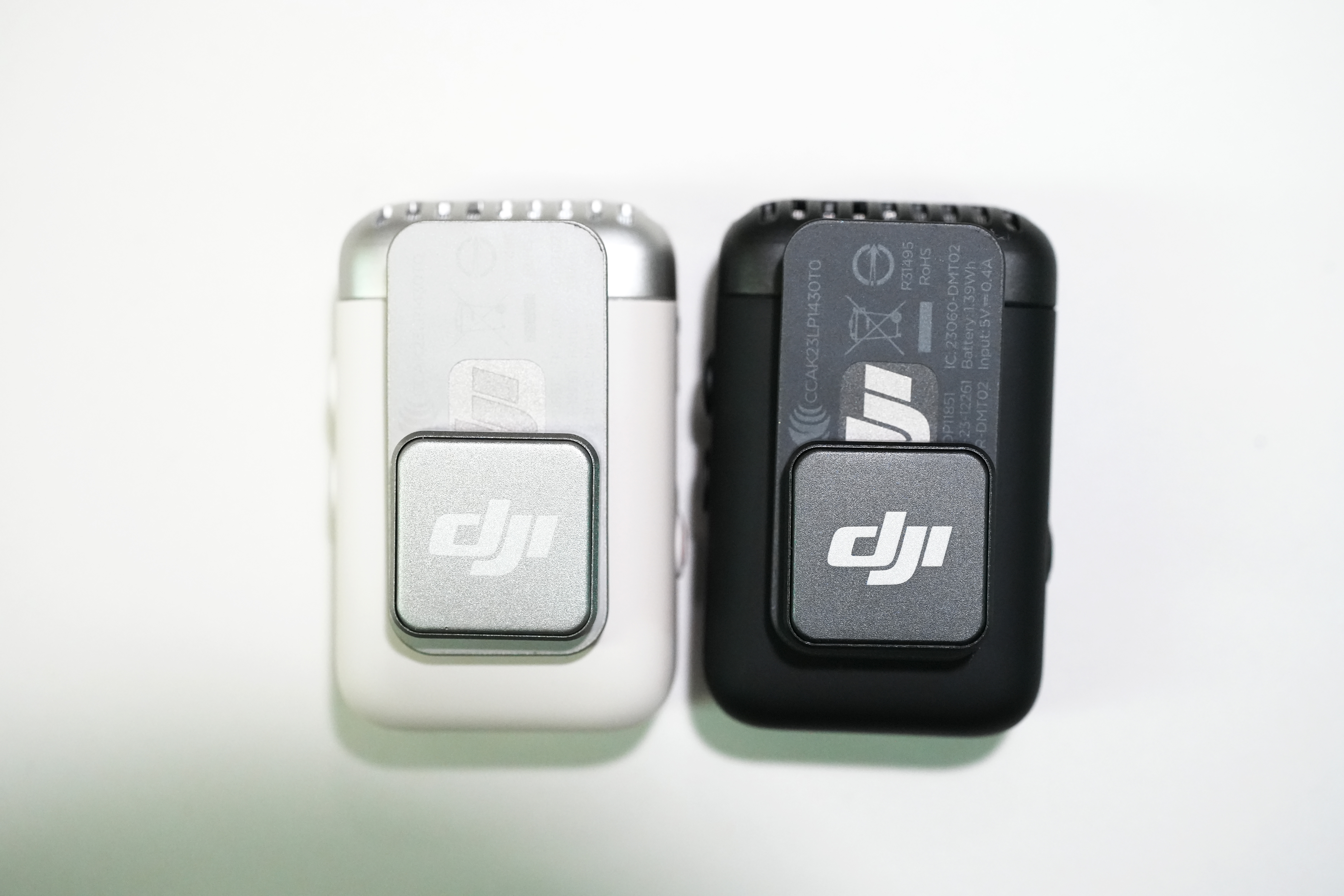 DJI MIC1 쓸 적에 와이프와 내가 각각 송신기를 장착했다가 내려놓고 다시 장착할 때 어떤 송신기가 누가 쓰던건지 구분이 안 될 때가 있었다. 이게 크게 중요한 건 아니나 내장 녹음된 wav 파일을 살려 쓸때 한 사람 것이 일관되게 들어가 있어야 편집할 때 편한데, 같은 모양의 송신기를 구분 없이 쓰다 보면 간간히 불편할 때가 있었다. 그래서 이렇게 검정/화이트의 구분은 꽤나 나에게 매력적인 포인트다.
