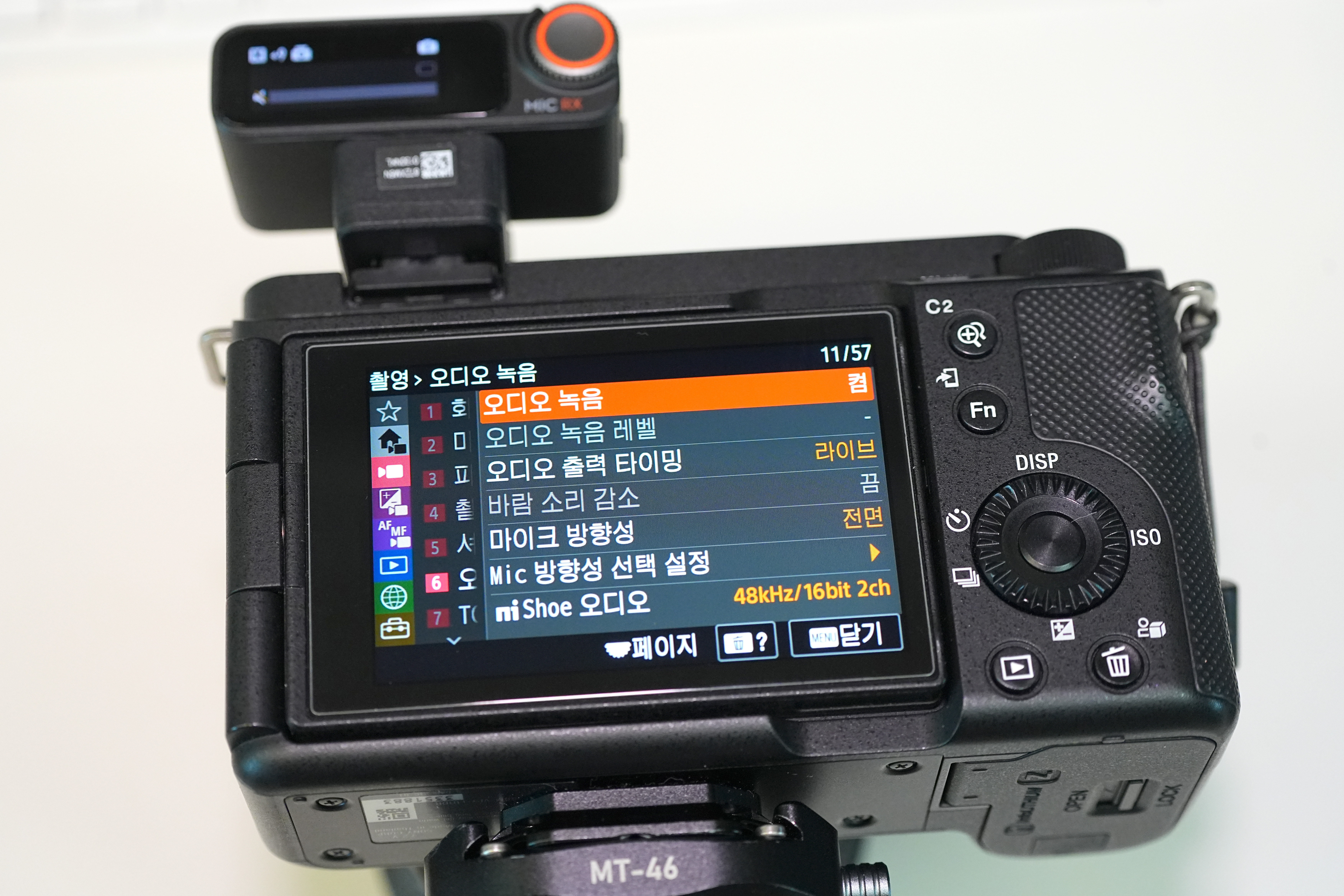 카메라에 연결하게 되면 위와 같이 오디오 녹음레벨이 비활성화 되고 mi Shoe 오디오는 녹음레벨 조정이 불가하고 2ch 상태로 바뀐다.