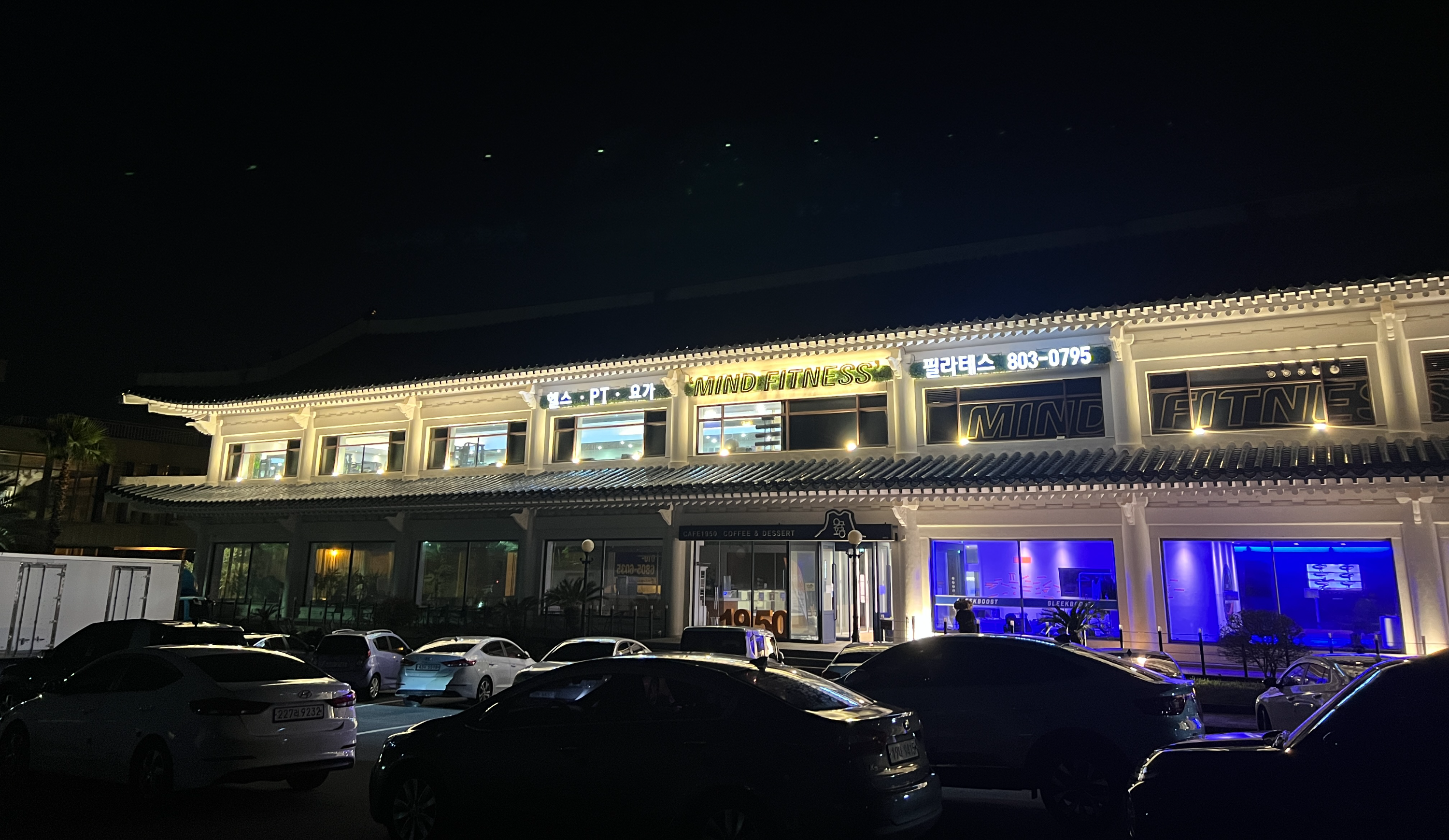 제주도 주말 여행중 중문 단지 근처에서 일일 헬스장을 이용할 곳을 찾다가 발견한 마인드 휘트니스. 인터넷으로 검색해 보았을때 제법 넓어 보이는 공간에, 주차공간이 여유있어 보이고 평일 저녁 24시까지라서 금요일 밤에 이용하기 딱이겠다 싶어 찾아 갔다.