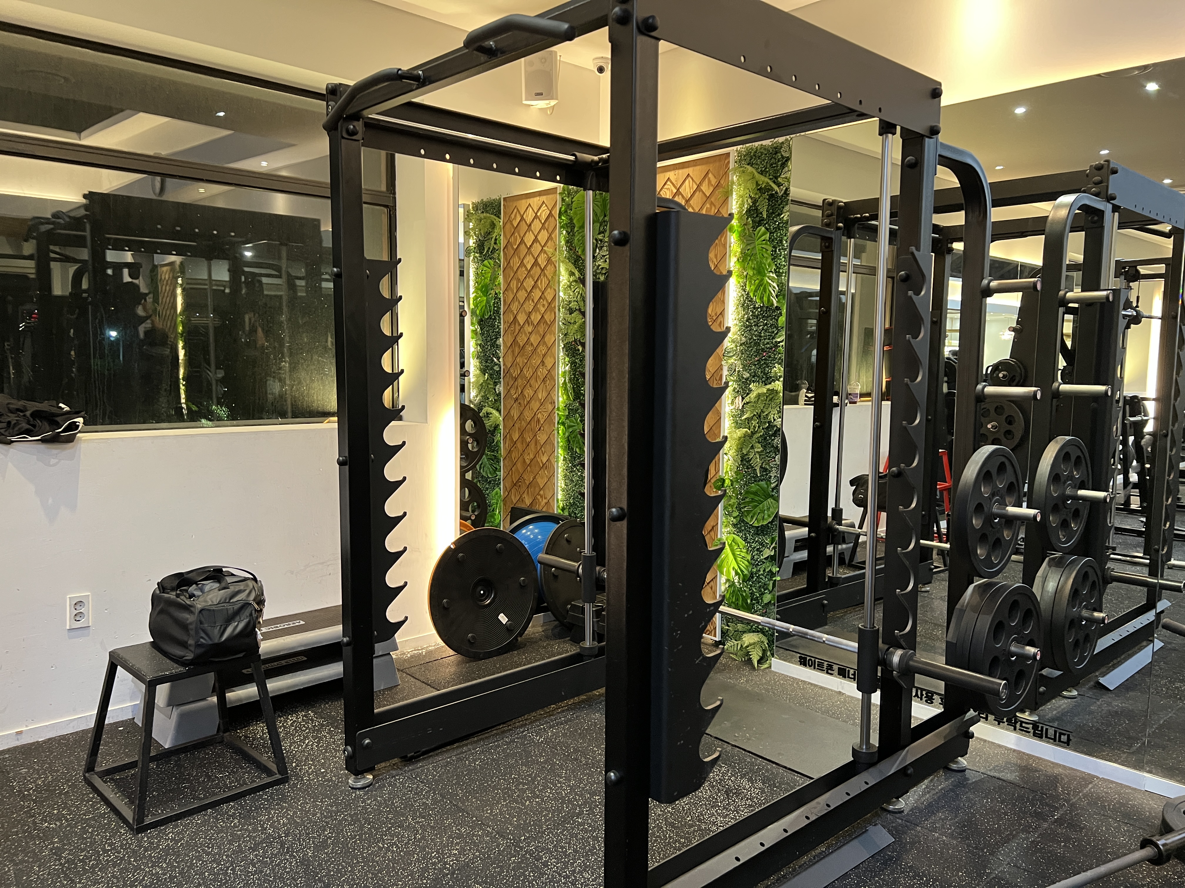 그 외에 랙이 몇군데 있는데, 스미스머신과 결합된 형태. 전체적으로 볼 때 머신 위주의 구성이고, 프리웨이트 공간이나 기구가 많아 보이진 않았다.