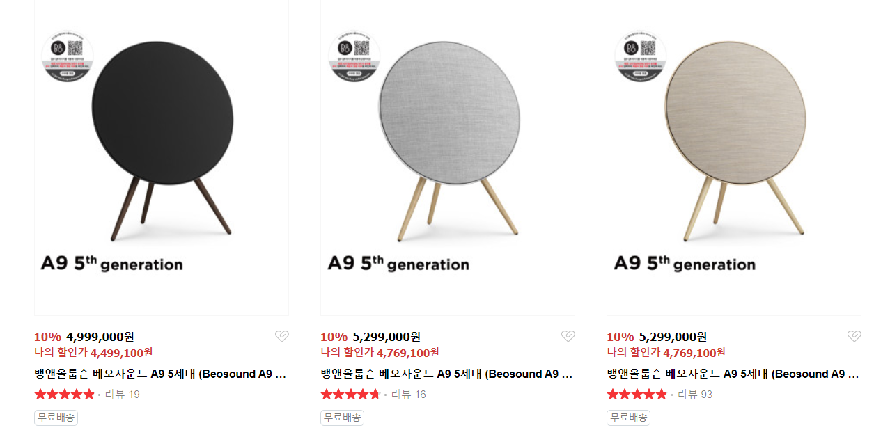 어떤 스피커로 거실을 장식할까 고민을 잠시 했으나, 와이프의 권유로 뱅앤 올룹슨 A9 스피커로 장만을 하였다.