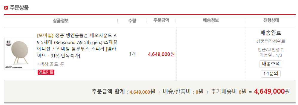 그래서 약 500만원 가량 하는 스피커라 부담이 많이 되었지만 와이프의 고집을 꺽을 수가 없었다.