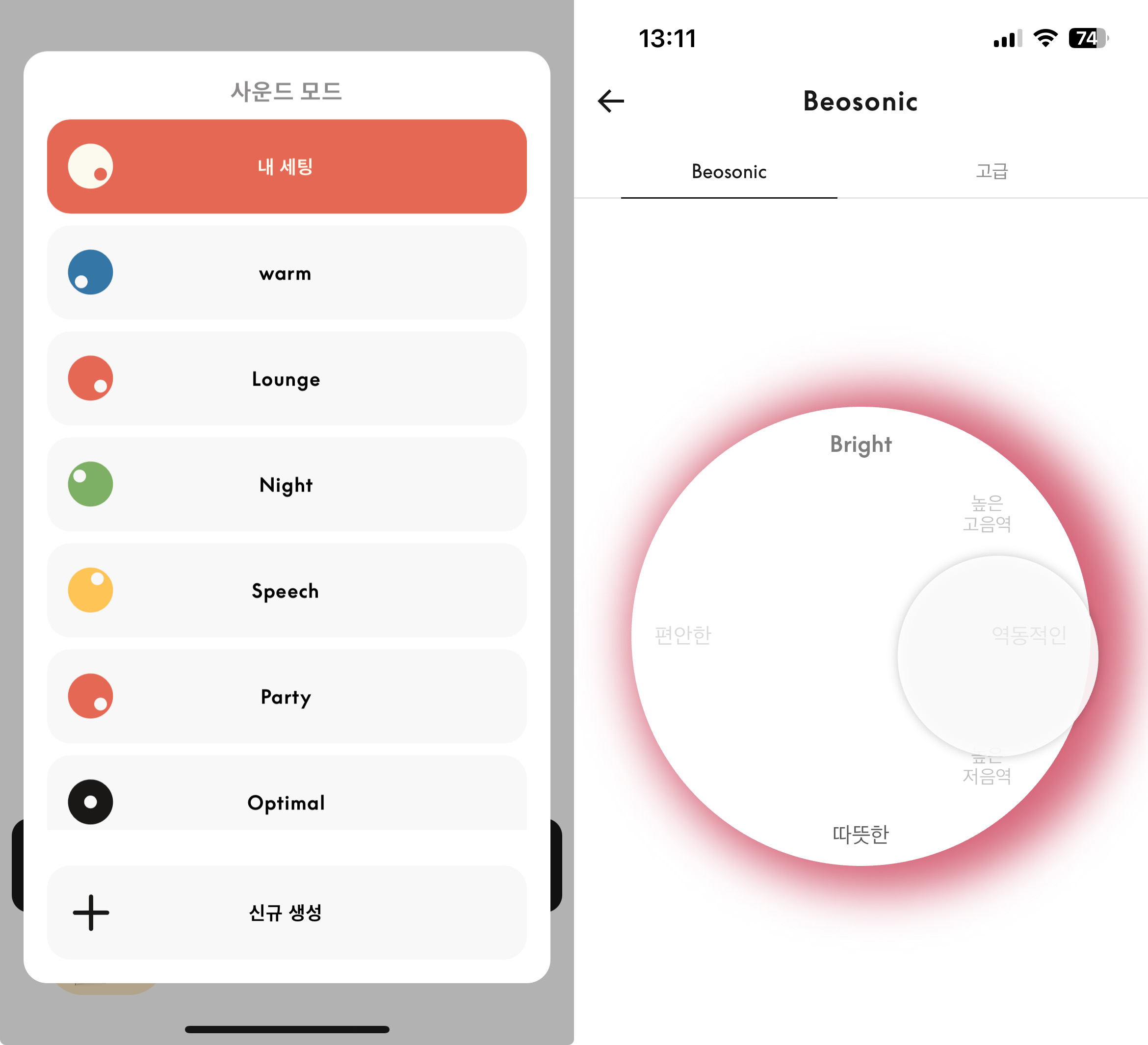 B&O App 에서 음향 세팅을 어느정도 손 볼수 있게 되어 있으나, 주파수별 세팅이라던지, 공간감 세팅 등의 대중적인 스피커에도 세팅 가능한 것들은거의 없고, 그냥 "느낌" 수준으로 조정이 가능한 수준이다.