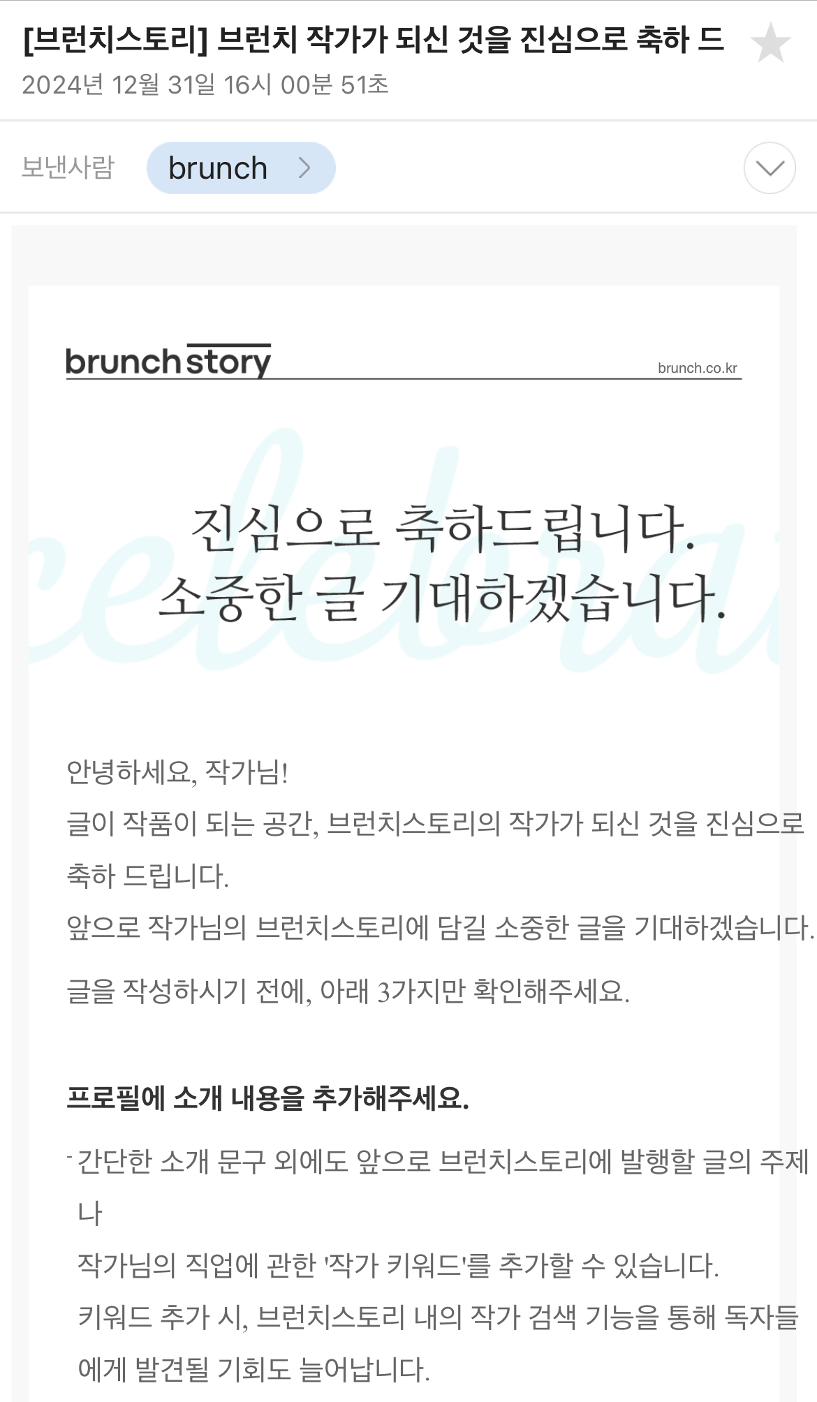 지난 주말, 캠핑을 가서 2025년을 계획하면서 새해 계획으로 ‘brunch' 의 작가로 등단하는 것을 목표로 삼았다. 한 몇년 전부터 생각만 하고 있던 계획이었는데, 2025년엔 한번 도전해 보리라 결심을 했다.