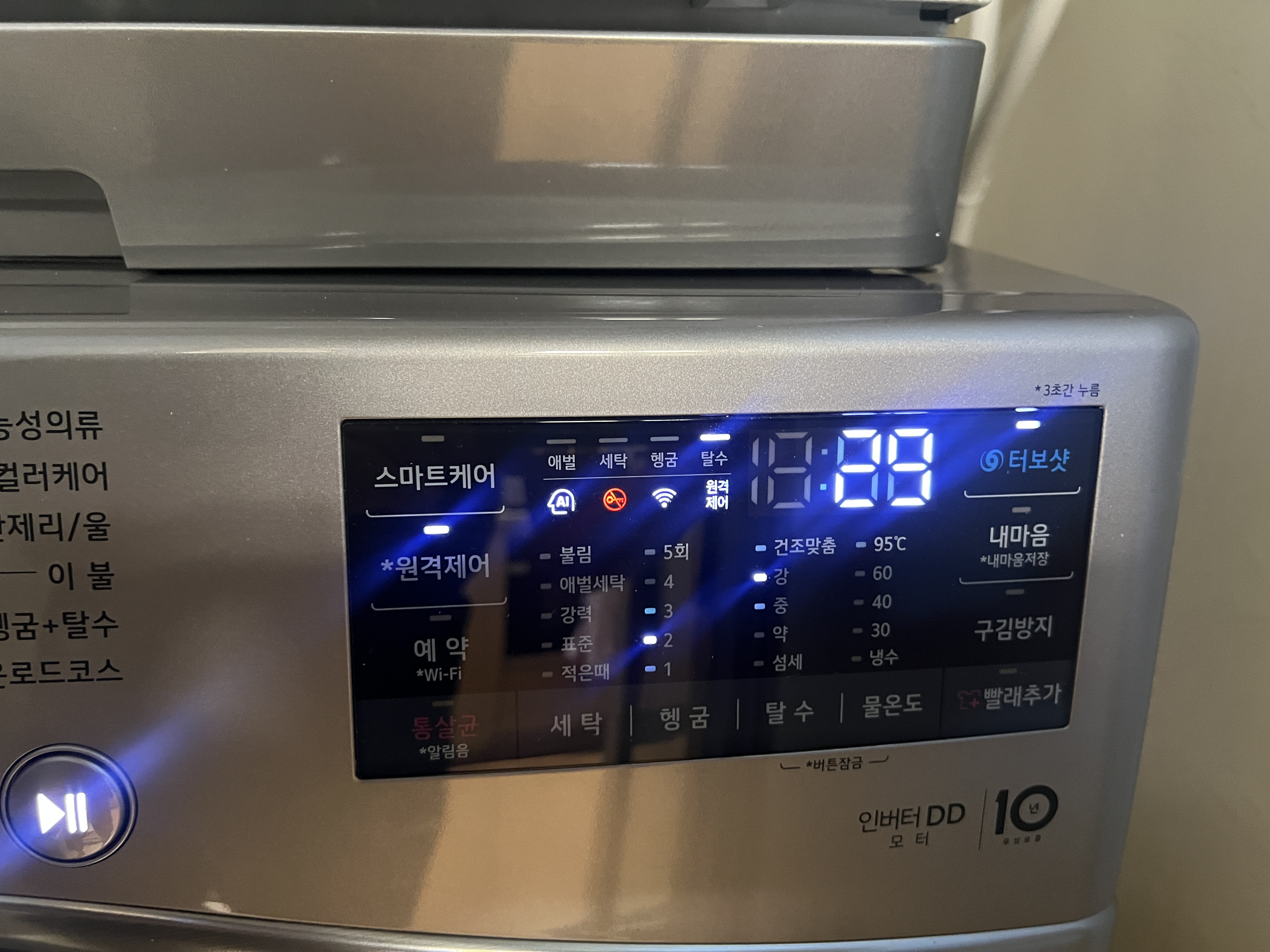 몇 번 세탁해본 결과 표준모드로 그냥 돌리면 세탁이 1시간 남짓이면 끝나는게 신기하다. 구 모델들에 비해서 헹궁 탈수를 대충 하는건가?