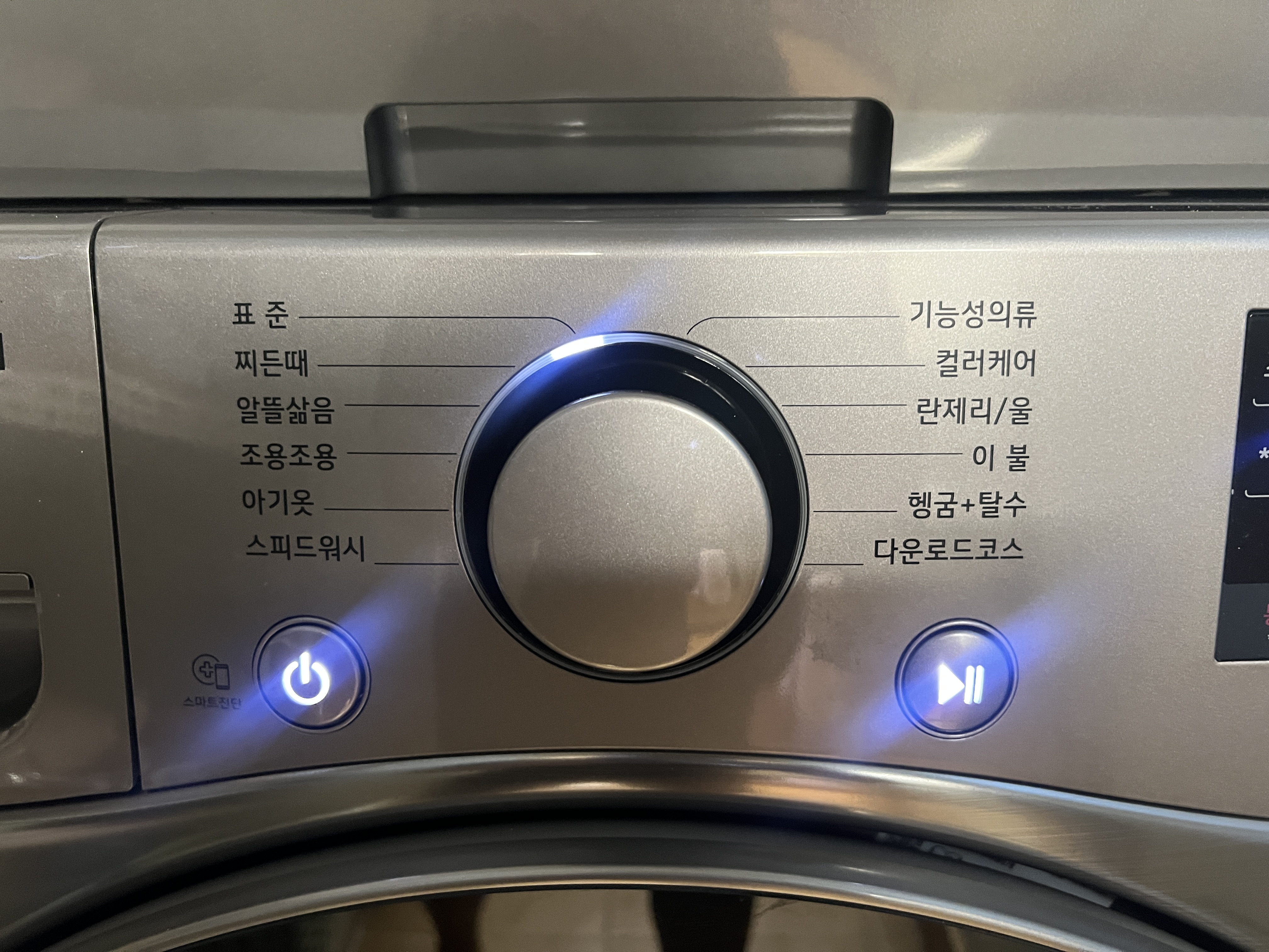 이사를 하면서 새로 장만한 세탁기. 이불 세탁에 용이한 용량 큰 걸로 사라는 와이프의 지령으로 21kg로 구입하였다