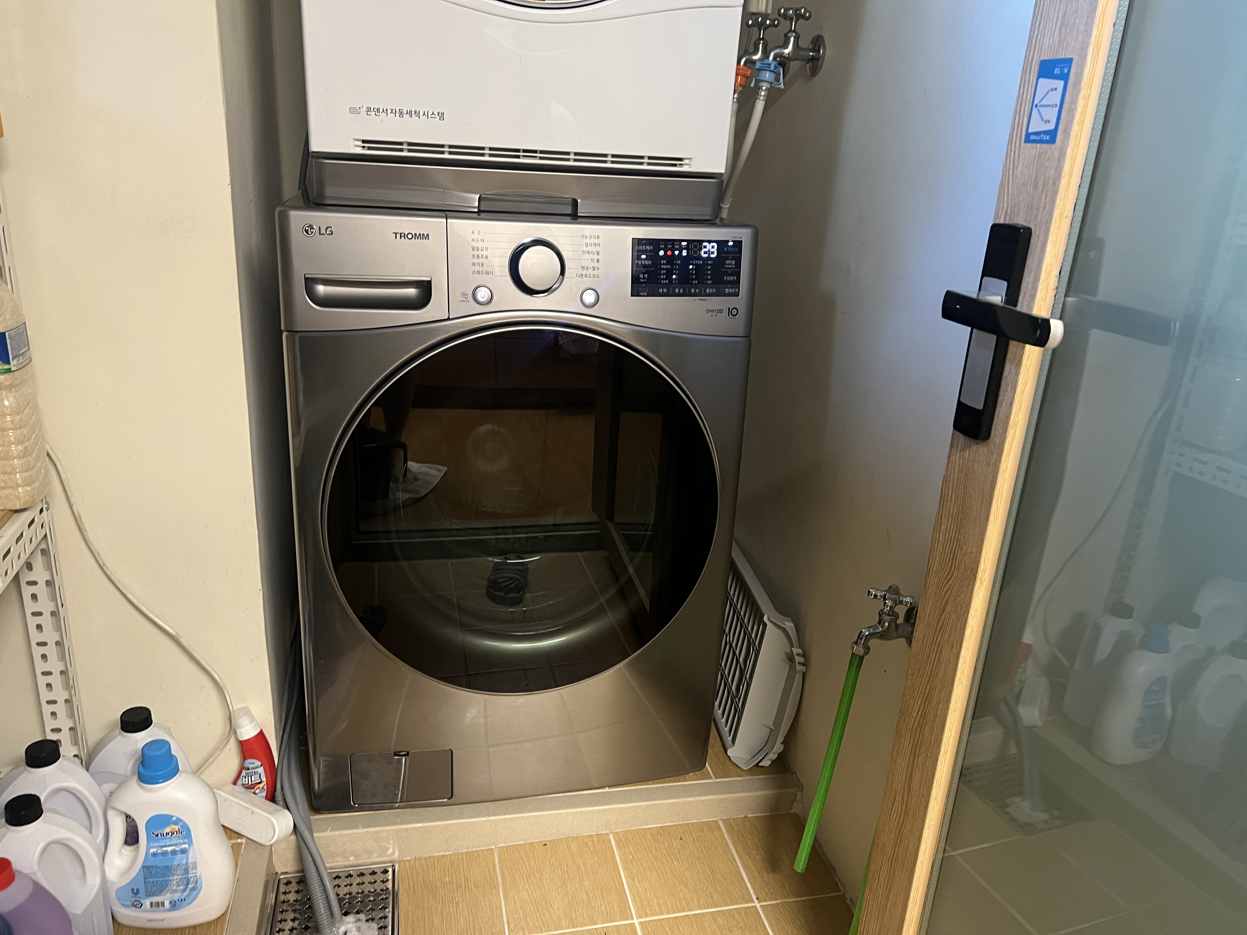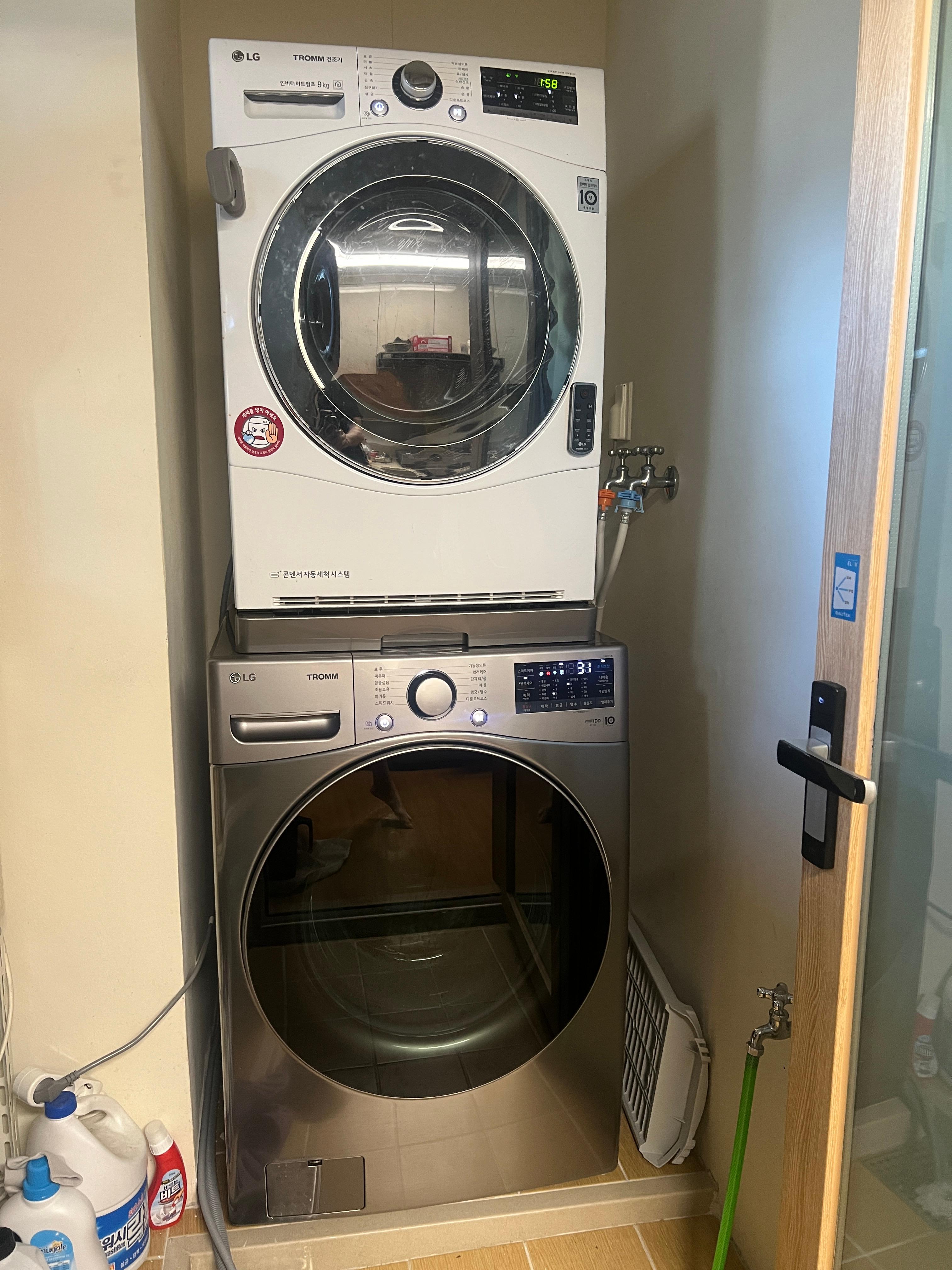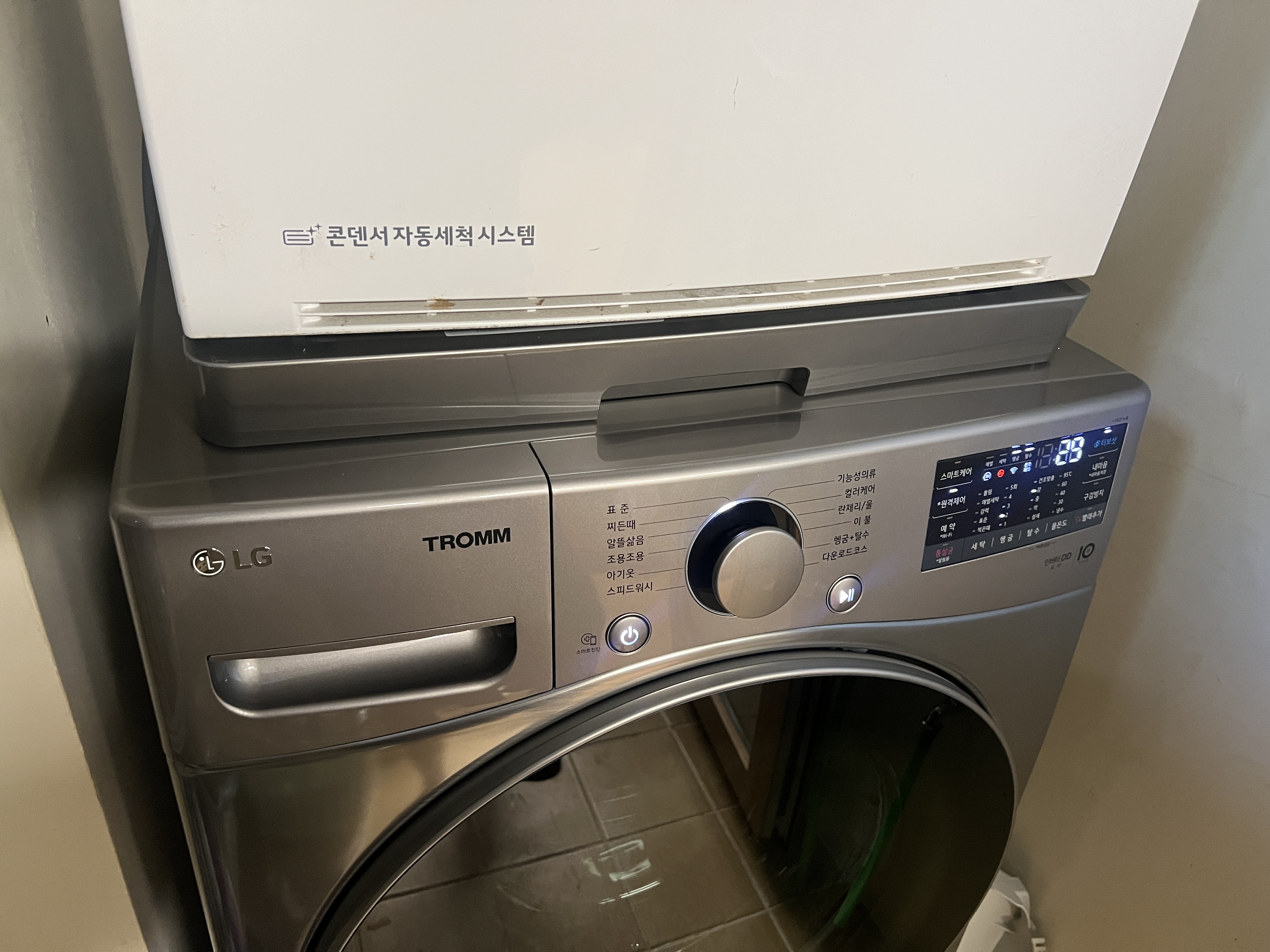 깔끔하다. 건조기가 높아져서 불편하지 않을까 했는데 의외로 편하다. 이 키트는 세탁기 구매 이후에 별도로 네이버인증점에서 구매를 했는데, 키트를 받으면 구매자가 설치하는 걸로 생각했으나, LG기사가 주문한 물건을 들고 방문해서 설치해주고 설치비는 카드로 결제하는 형태였다.