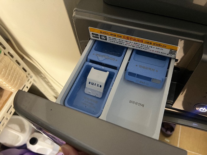세탁기 용량이 커지니 세제넣는 부분도 커진것 같다.