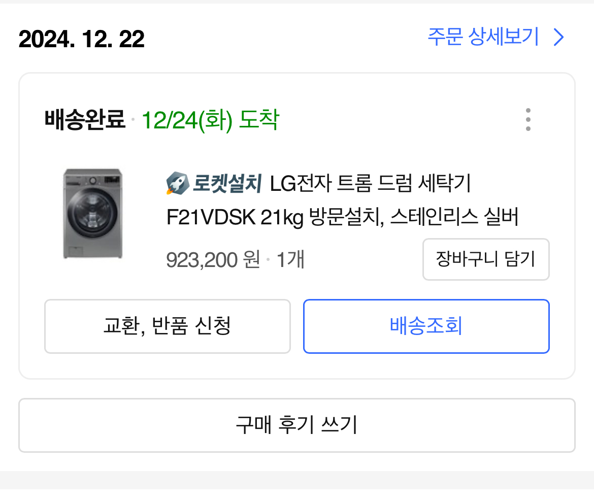 대략 많이 팔리는 21LG세탁기가 21 VDSK모델인 듯 해보였고, 쿠팡이 제일 저렴했다. 12월 주문할 당시 90만원 초반이라 싸다 생각하고 질렀는데 후기 글을 쓰는 지금 들어가 보니 80만원 이하에도 구매가능해 보인다. 짜증이다..