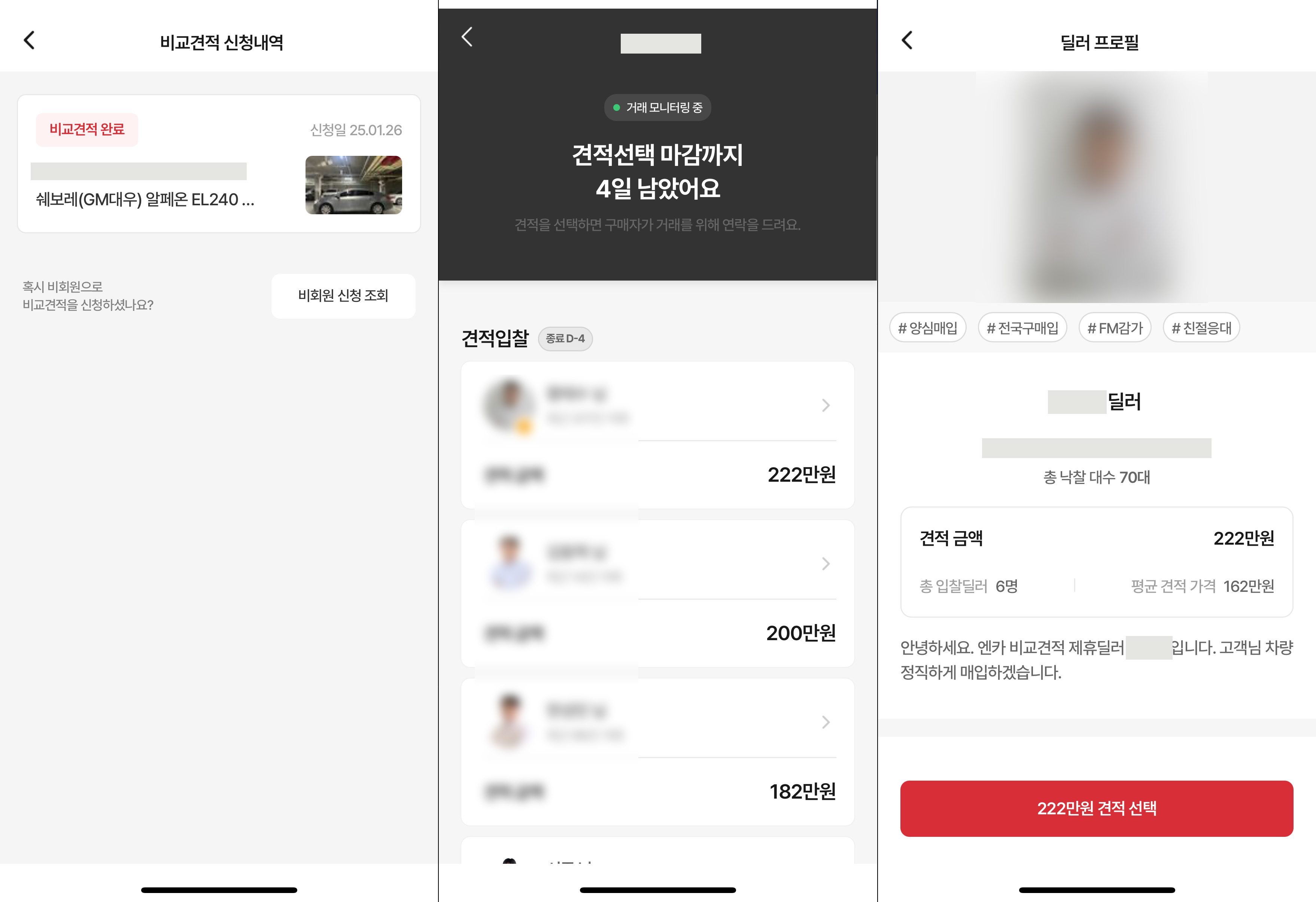 같은 시기에, SK엔카에 직접 매물 사진을 꼼꼼하게 찍어 올려서, 딜러들로 부터 견적을 받아보았는데
