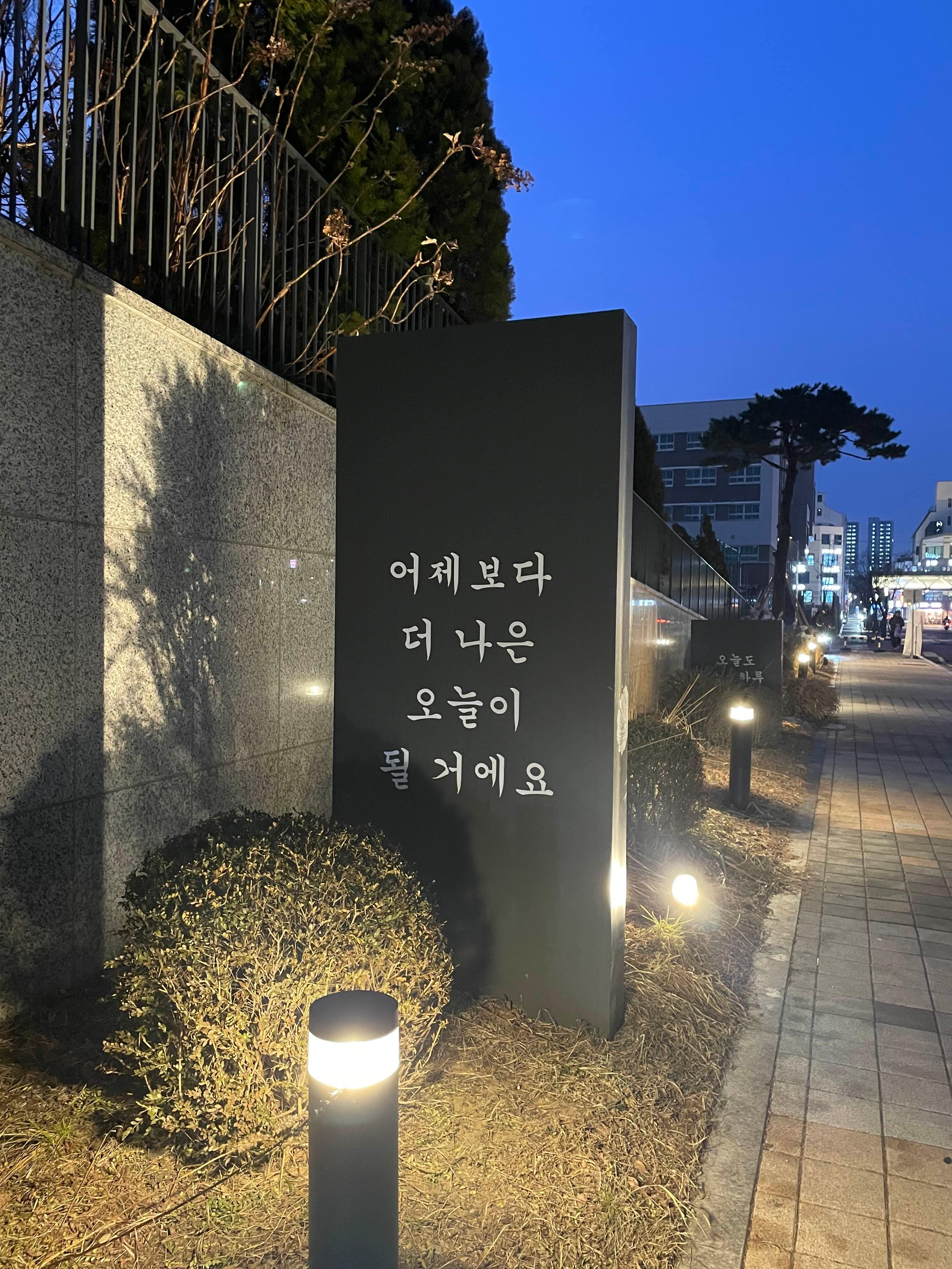 Gate 4쪽으로 가는 길에 있는 돌기둥. 출근길에 힘이 될 것 같다.