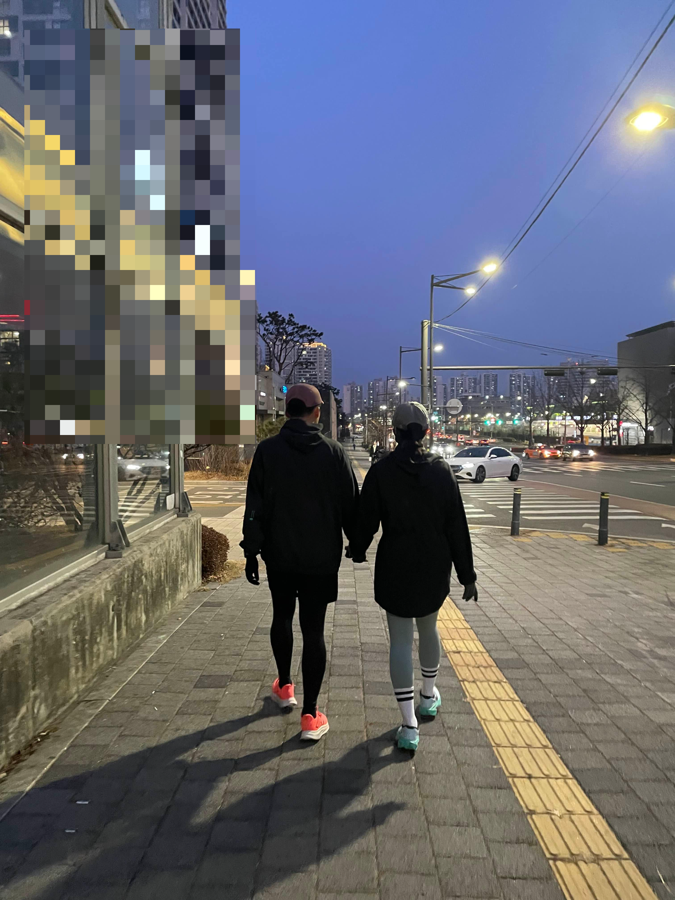 런닝 복장 갖춰입고 손 꼭 붙잡고 걷는 부부의 모습이 예뻐서 찰칵. 난 이사오고 한달만에 처음 나와봤는데, 이들은 주말 루틴처럼 보였다. 젊을때부터 관리하는 모습보고 다시 한번 반성.ㅠㅠ