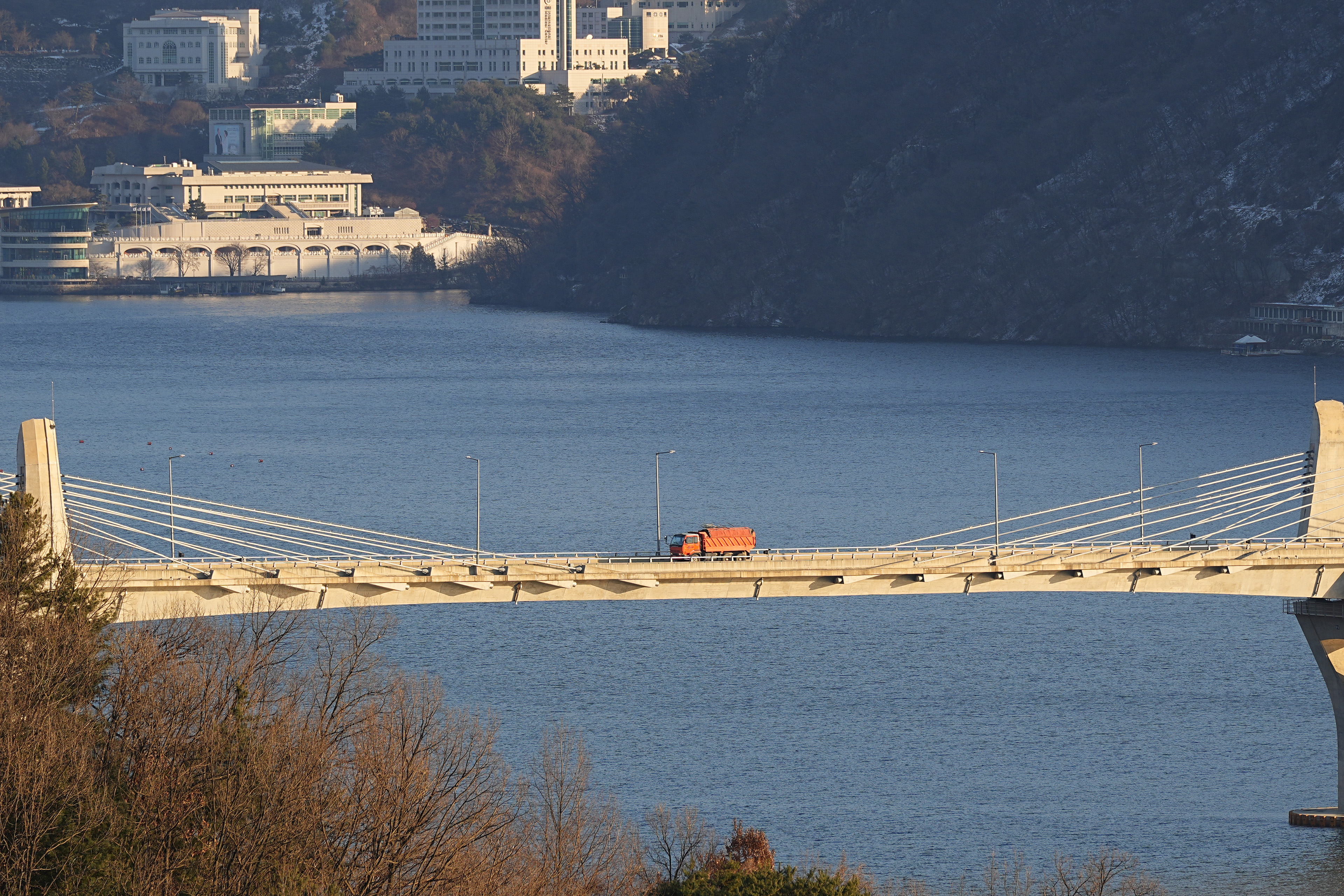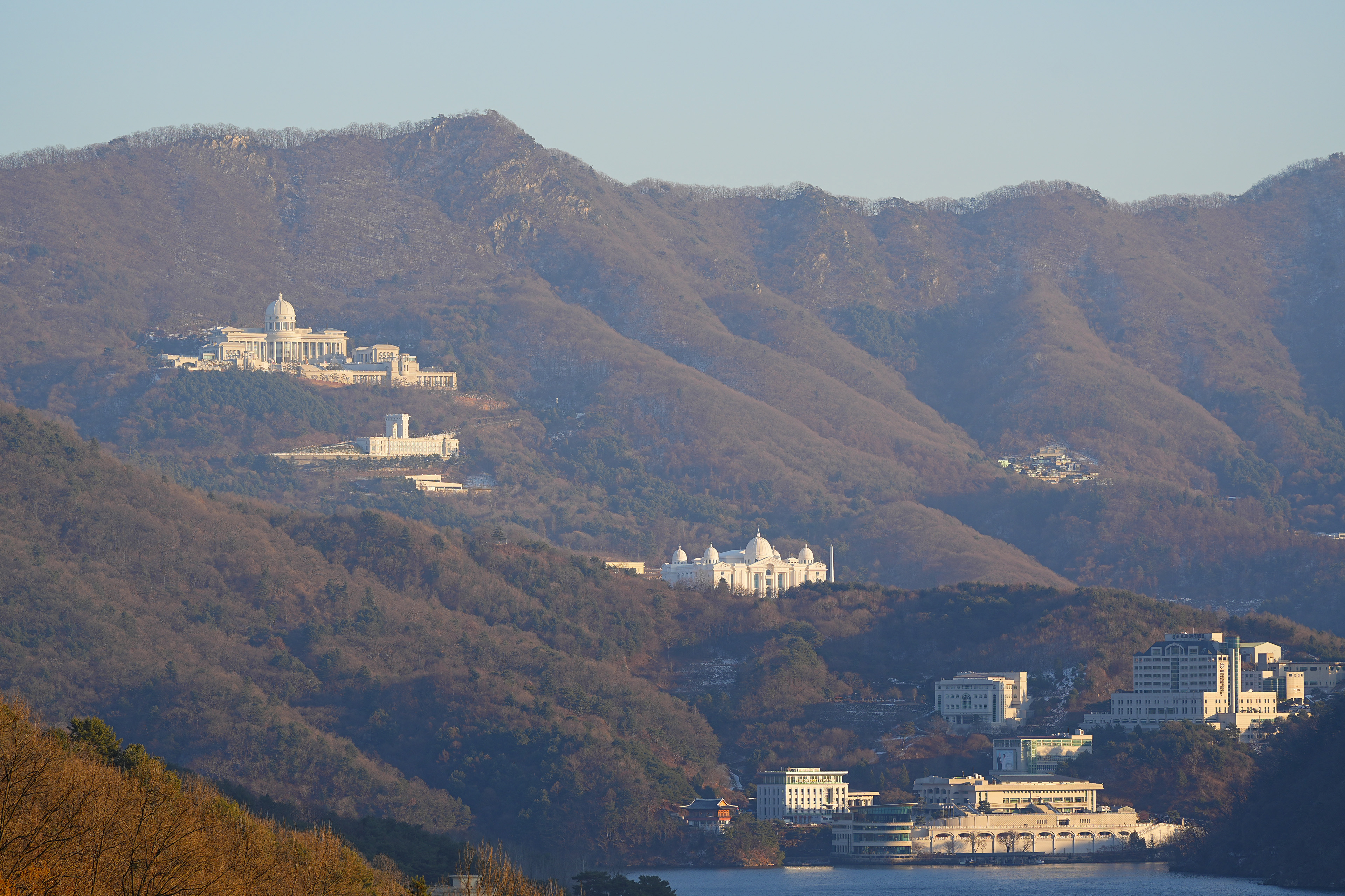 멀리 산 중턱에 궁전같이 보이는 건물이 보이는데, 찾아보니 통일교 건물인듯 하다.