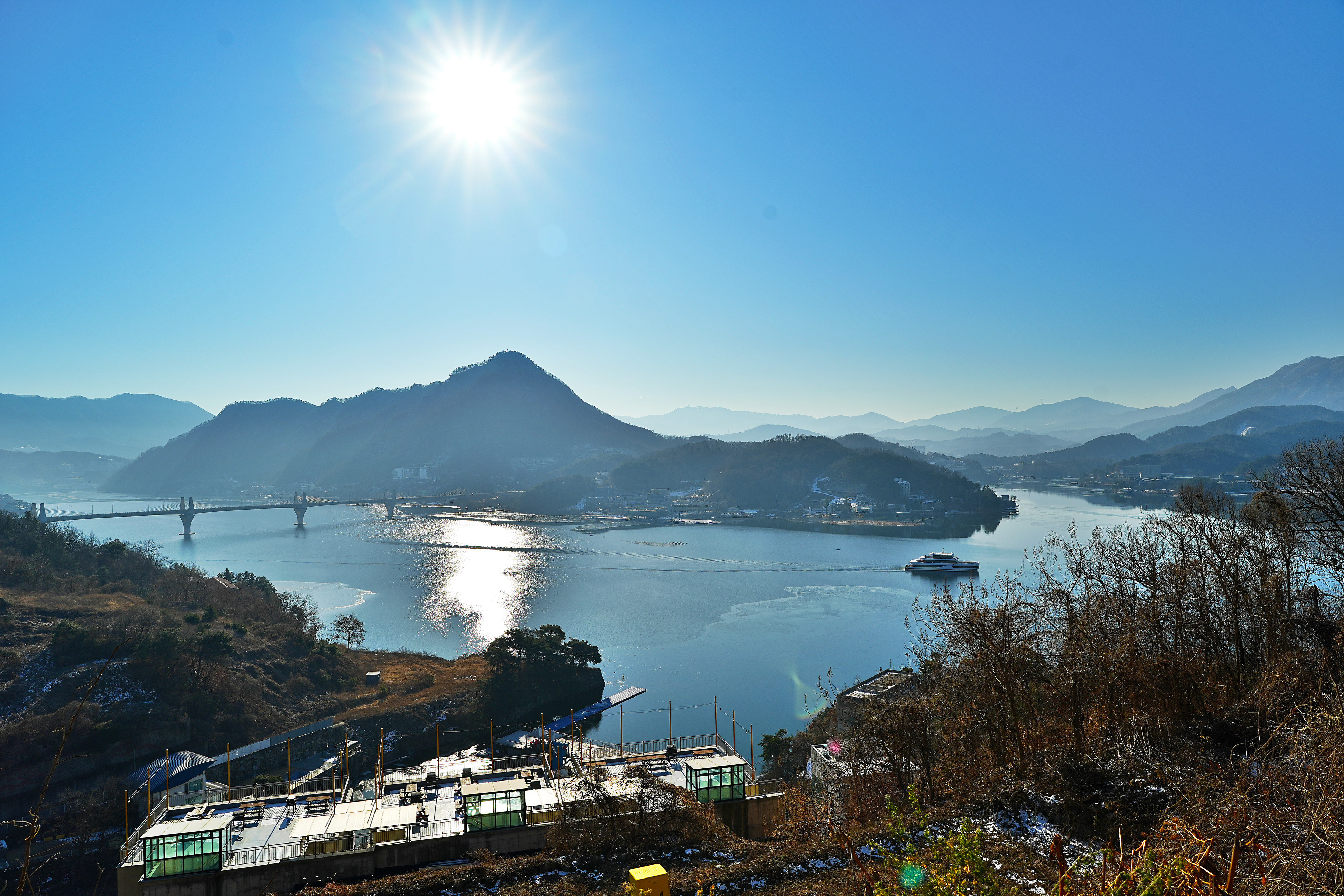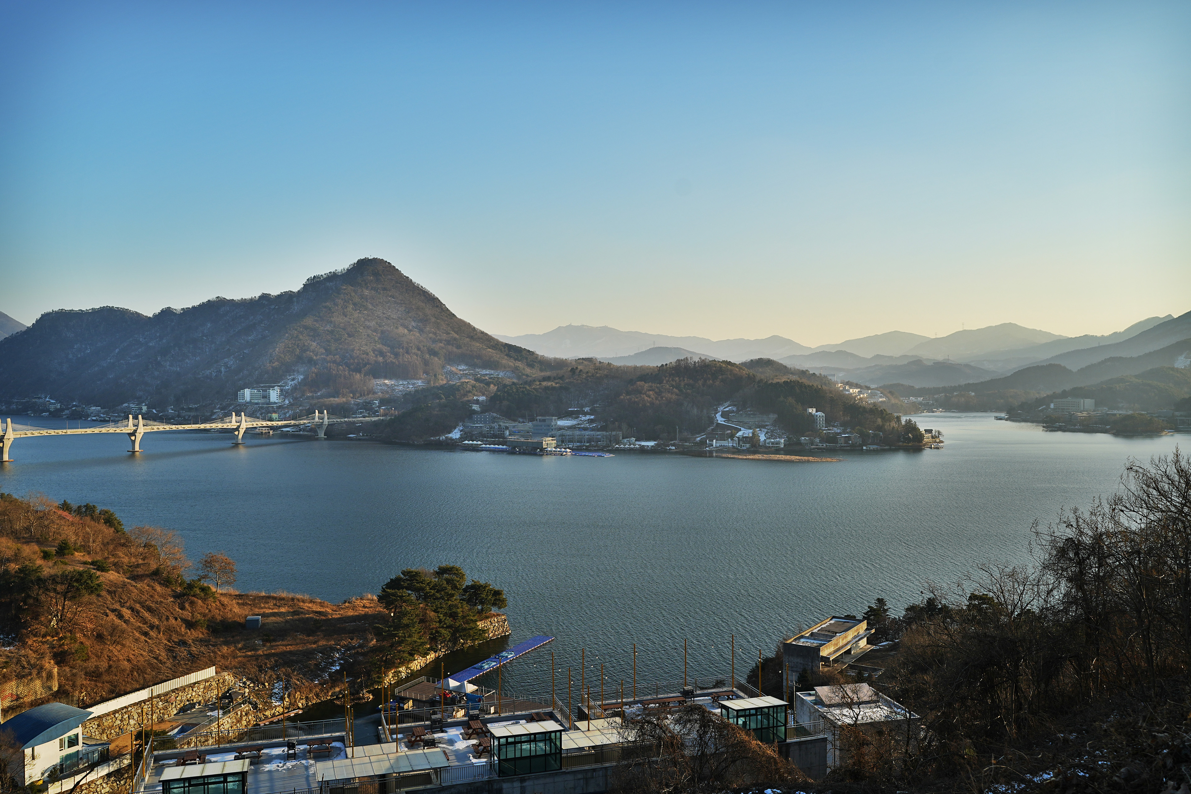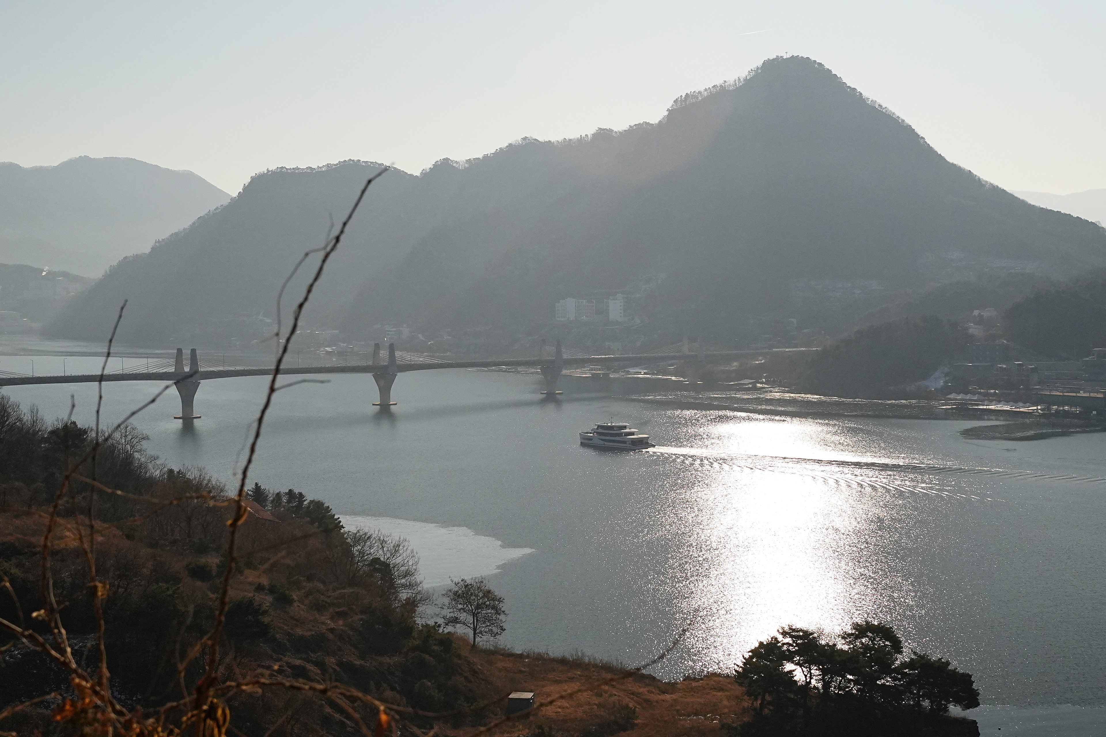 해가 뉘엿뉘엿 넘어가면서 청평호에 드리우는 노을에 비친 풍경이 꽤나 멋있다.