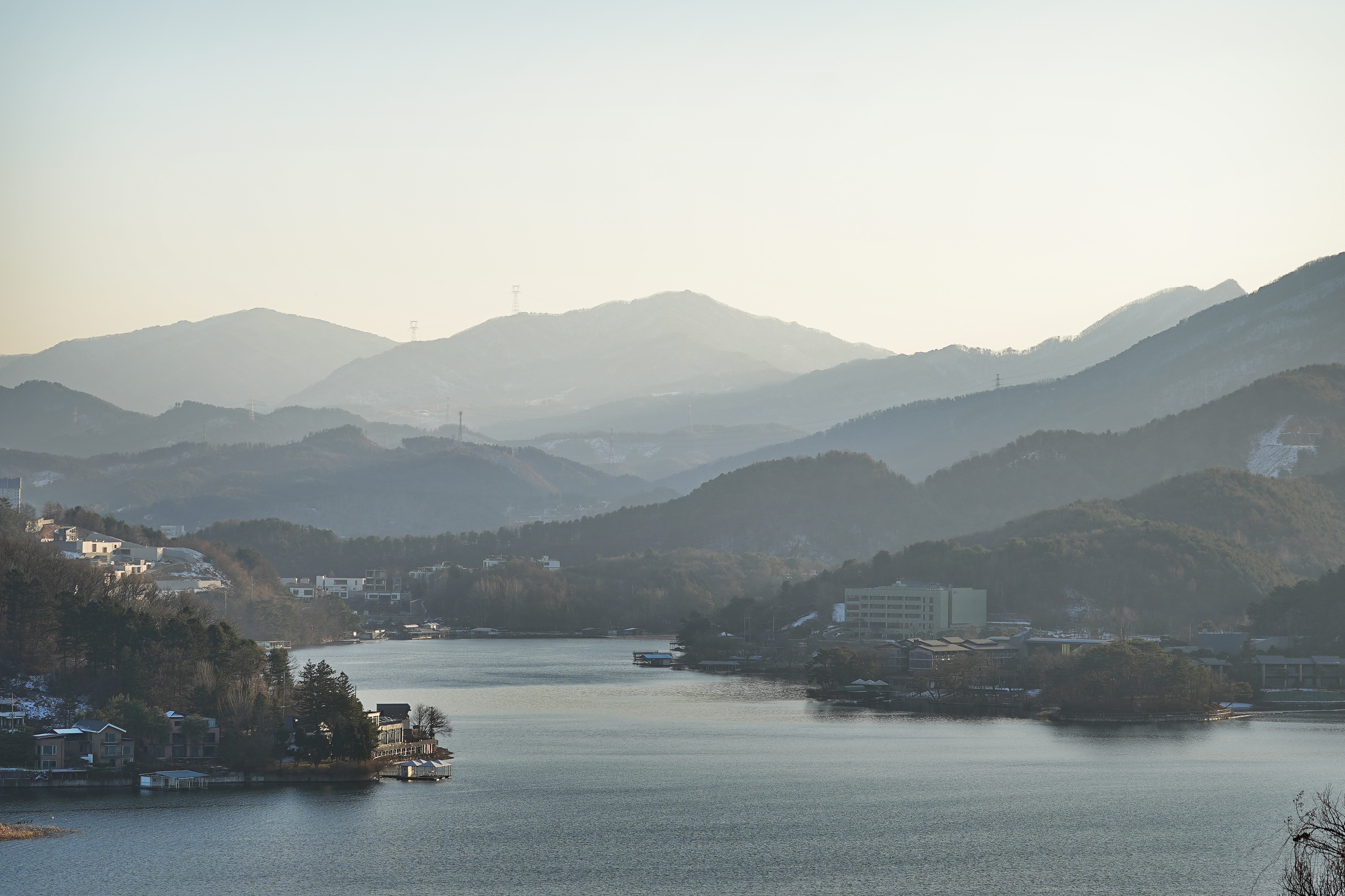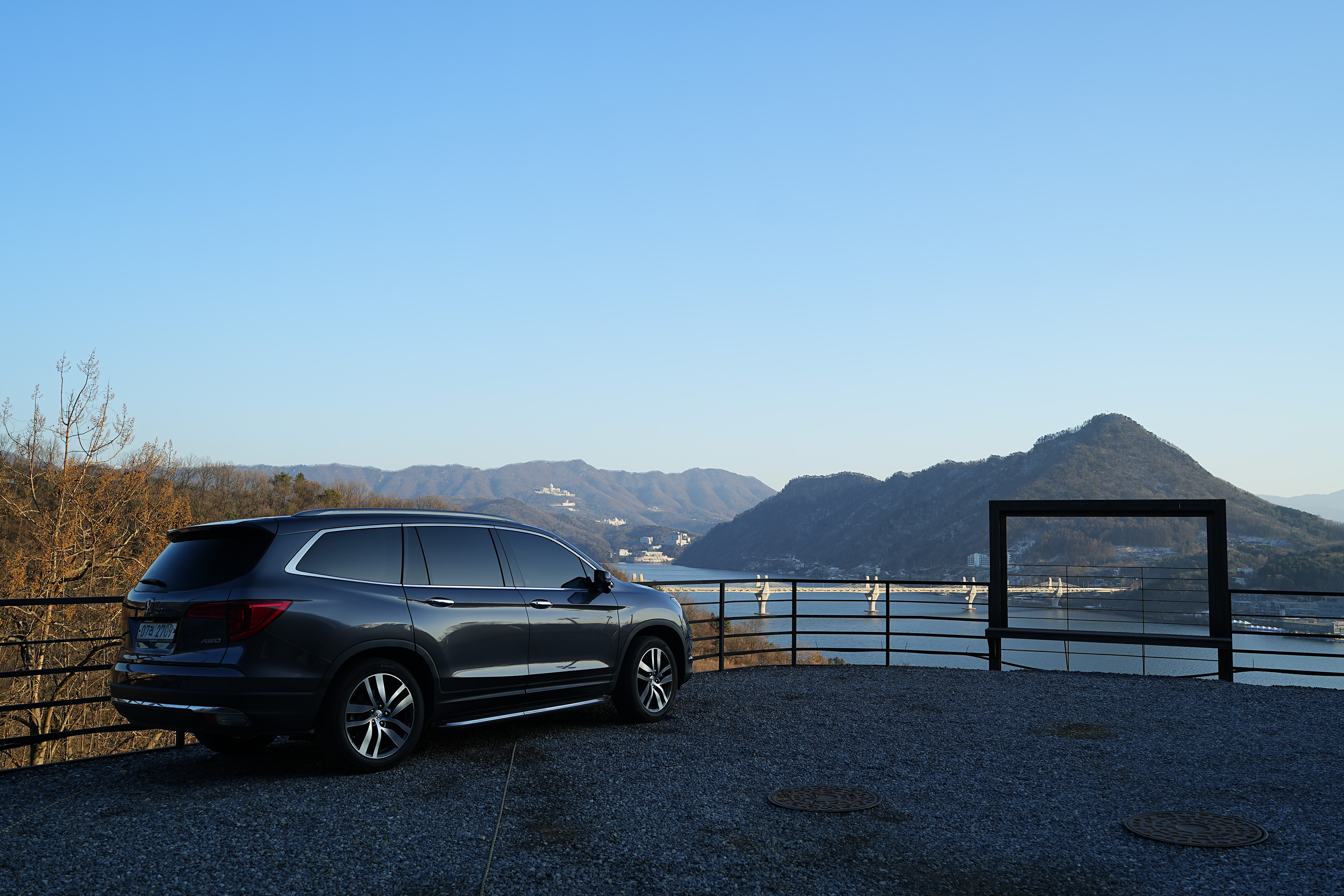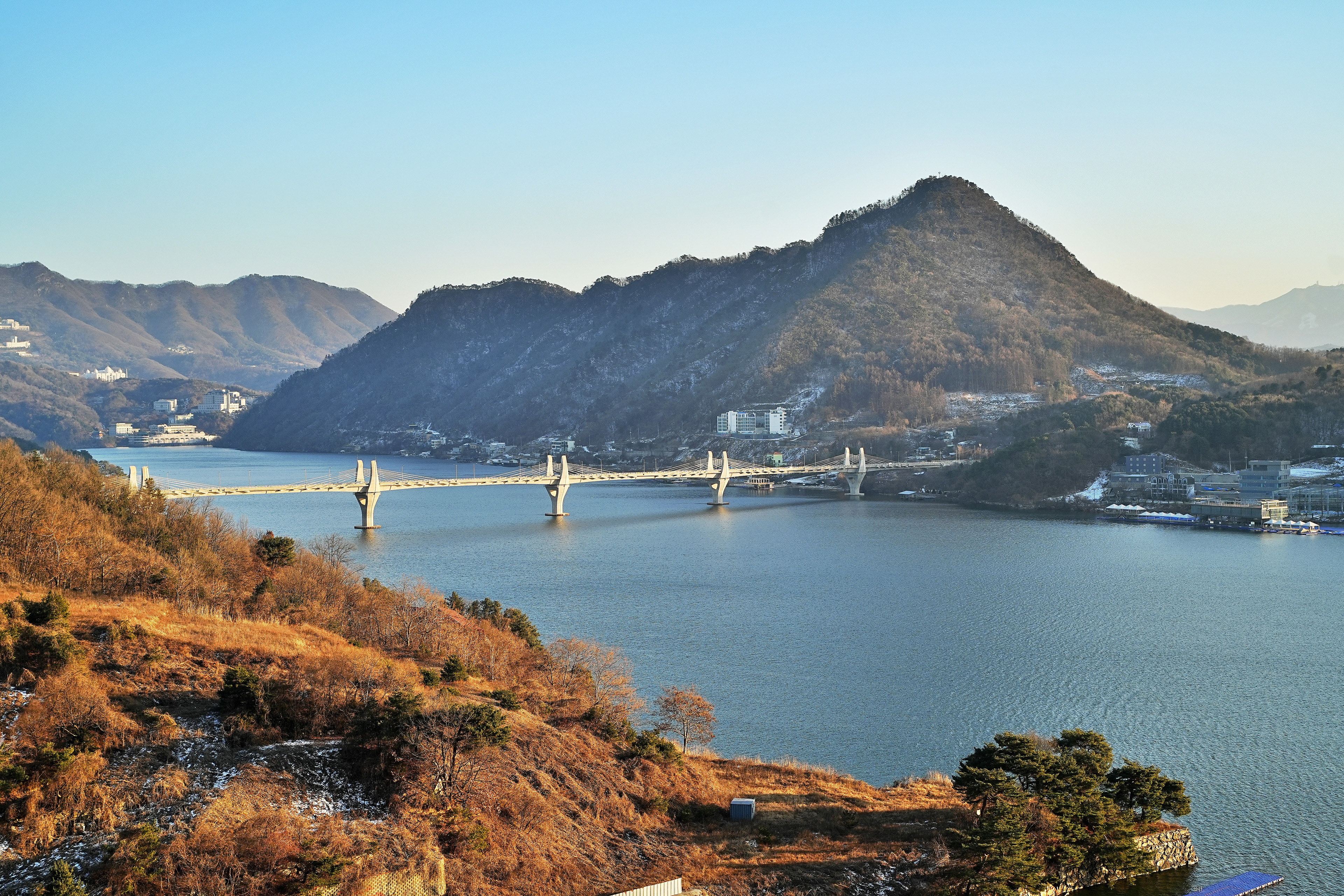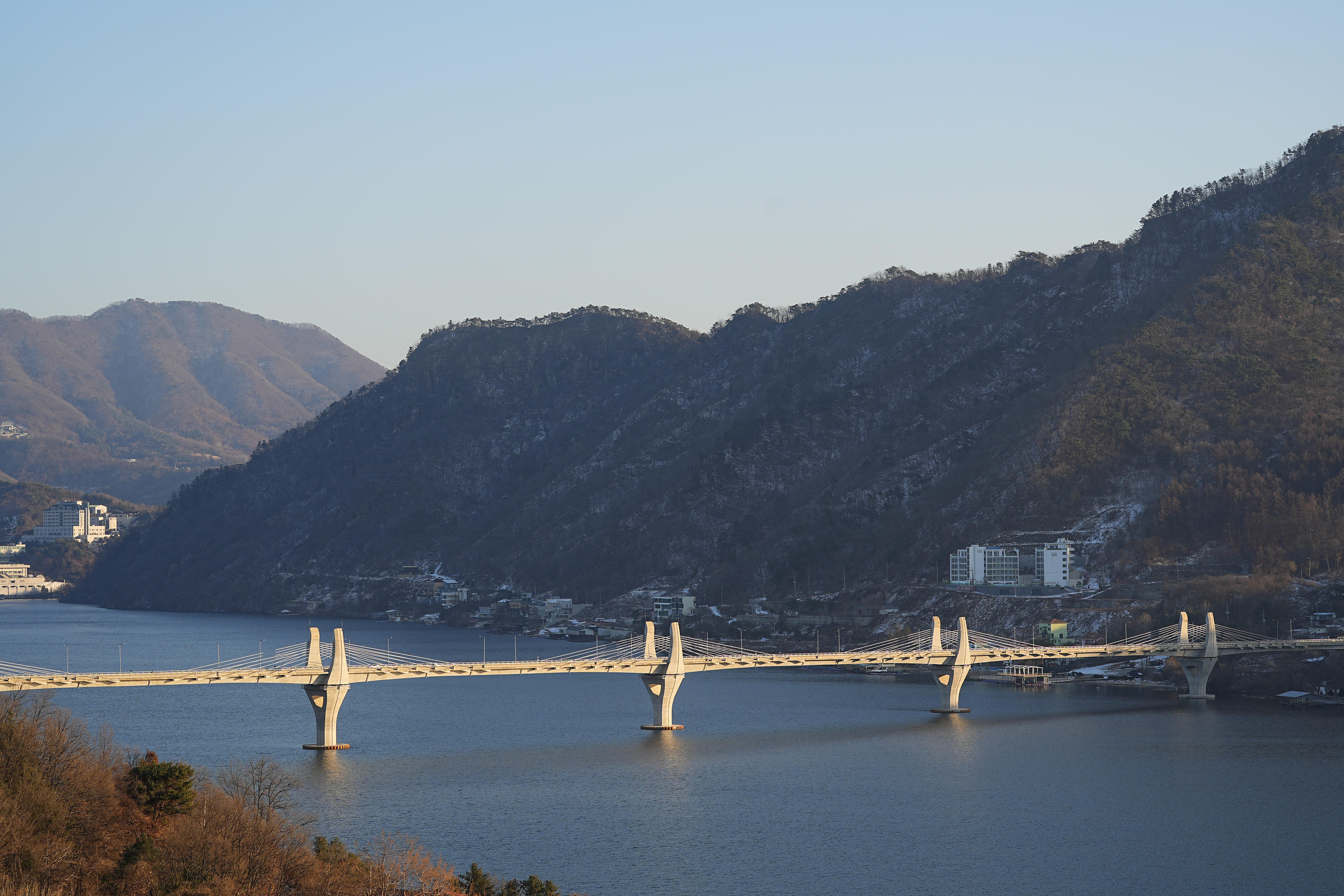 해가 뉘엿뉘엿 넘어가면서 청평호에 드리우는 노을에 비친 풍경이 꽤나 멋있다.