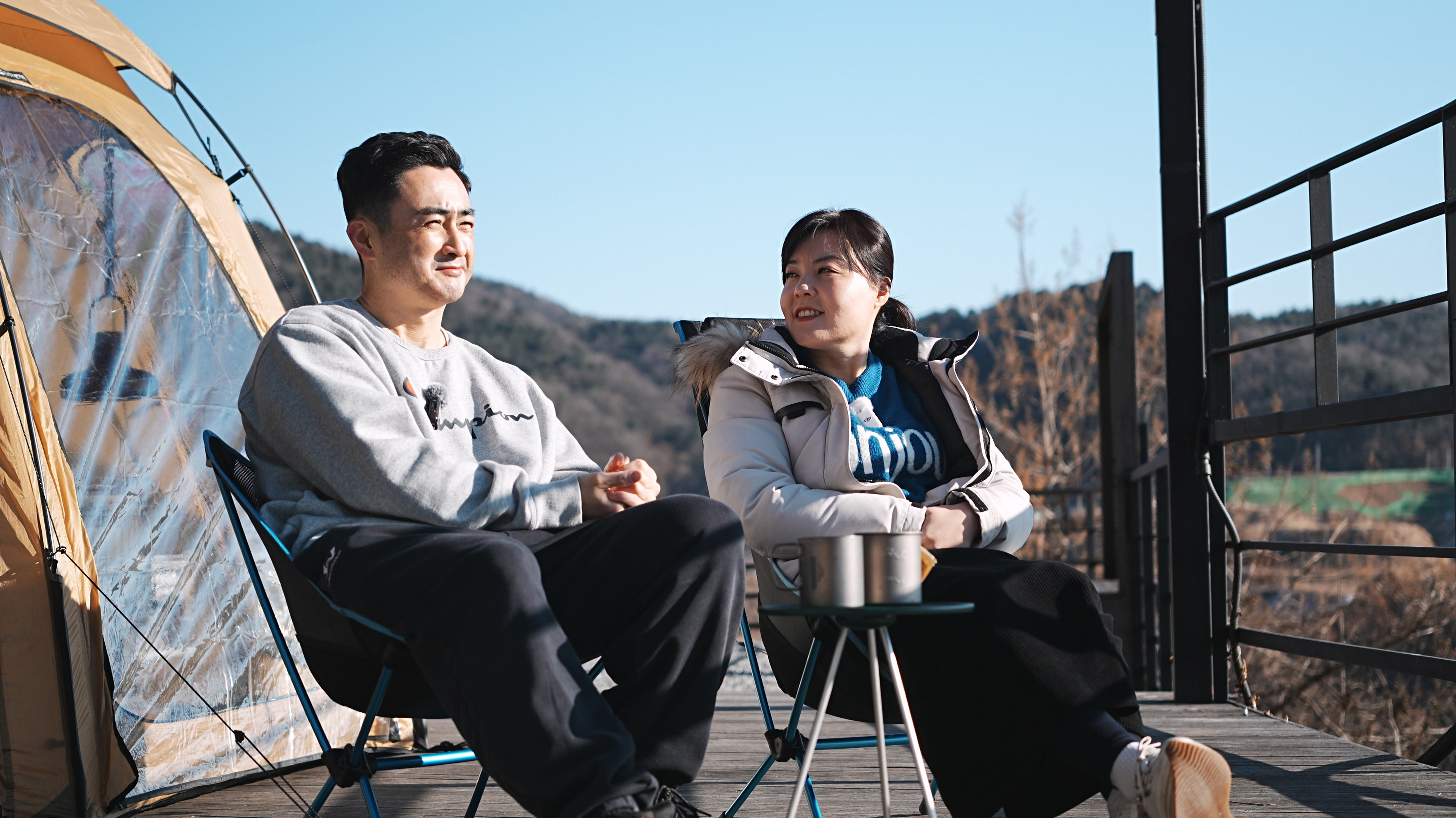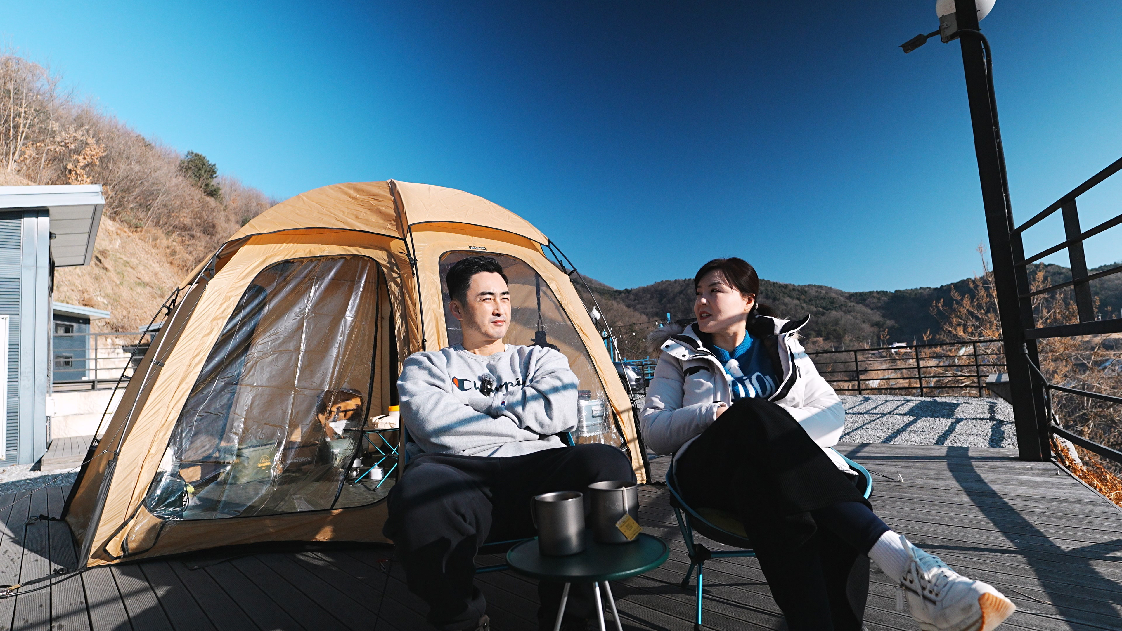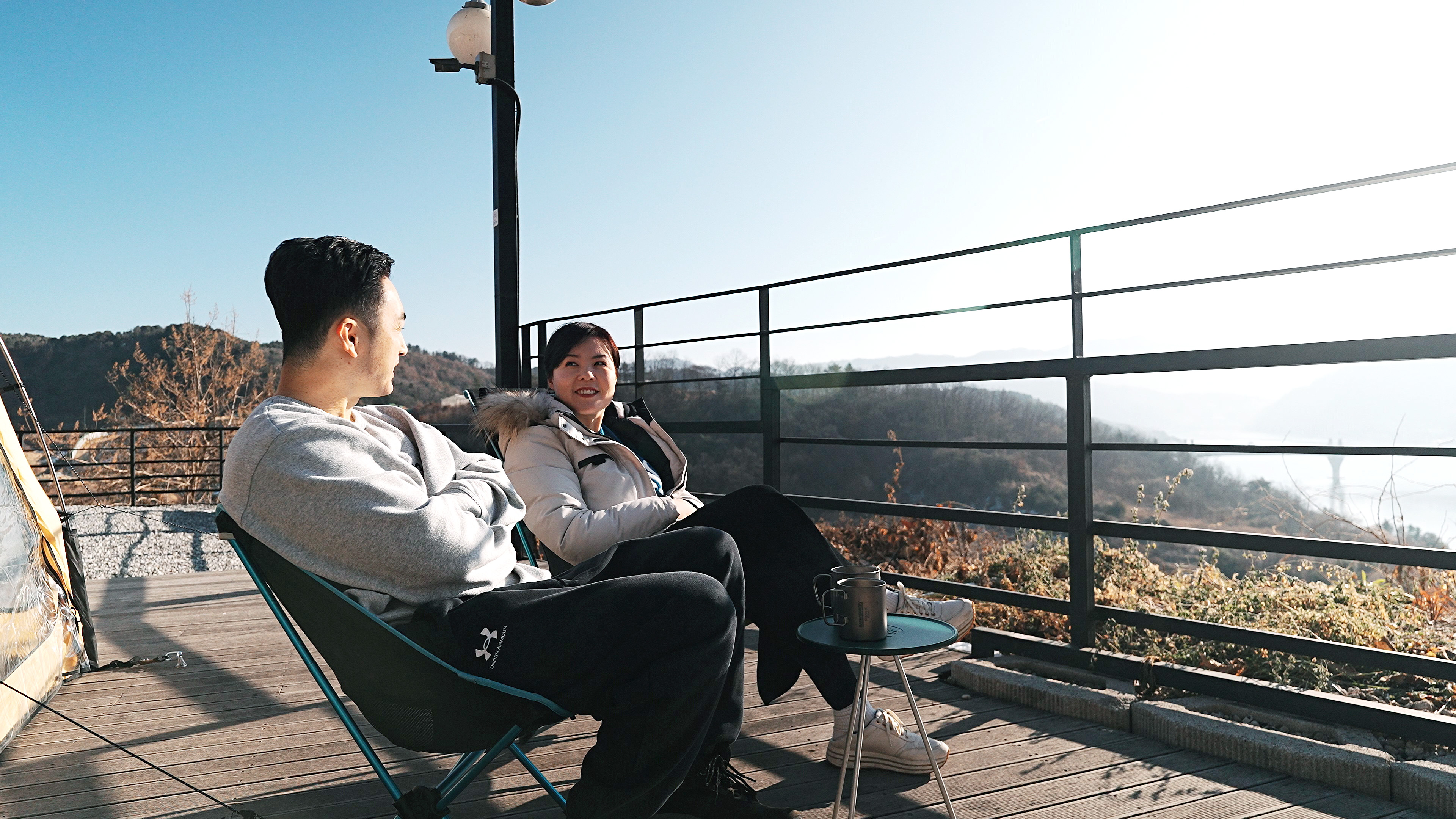커피 한 잔과 함깨 아침 햇살 받으며 둘이서 담소를 나누면서 양평 캠프게이트에서의 캠핑을 마무리한다.