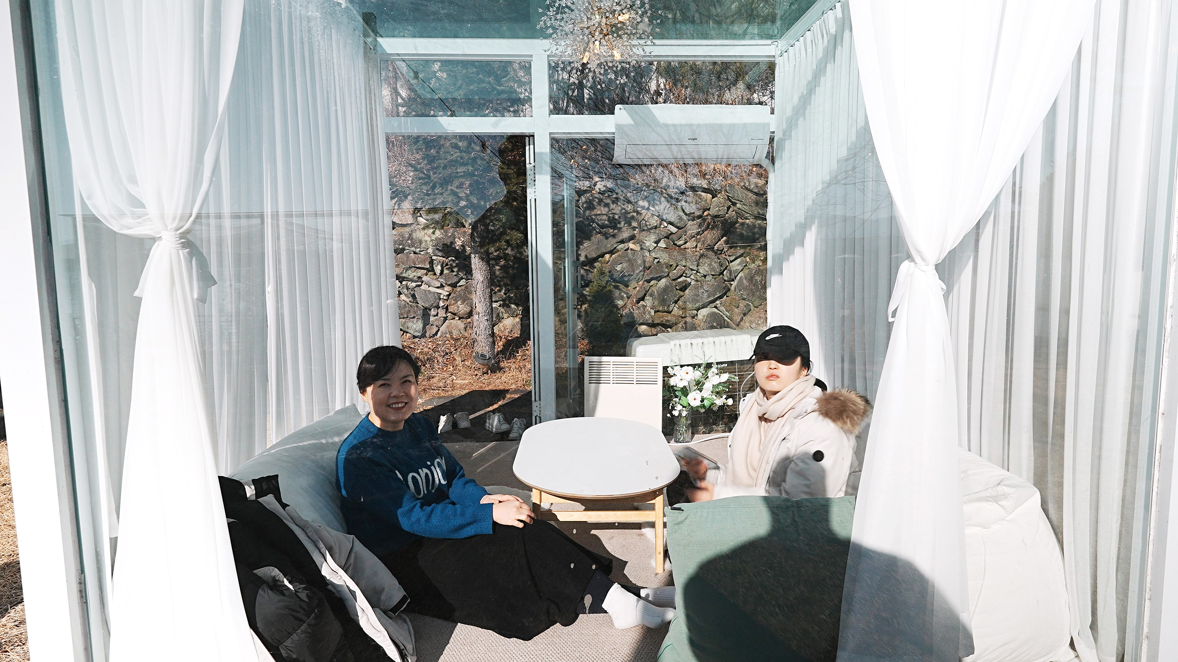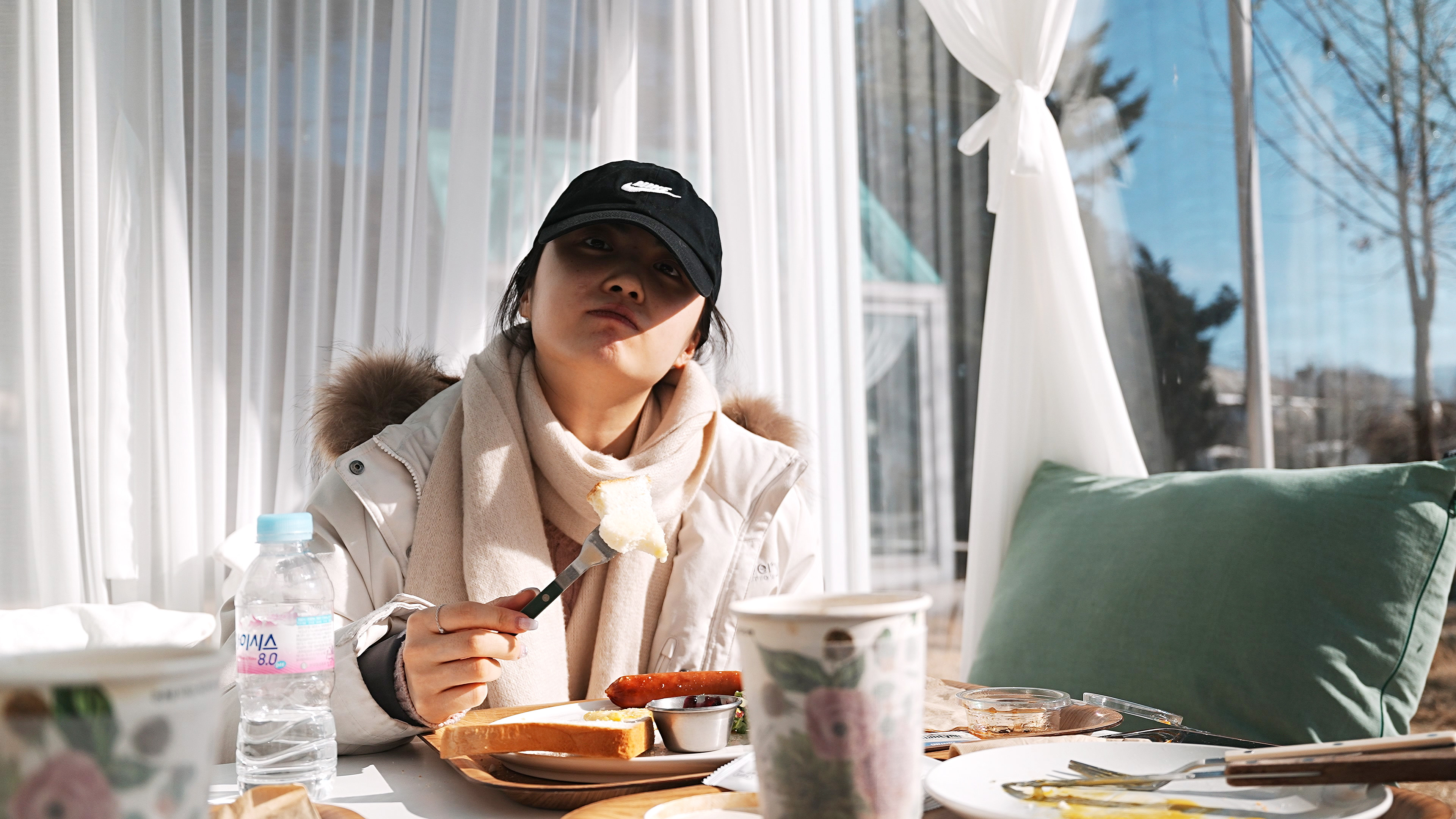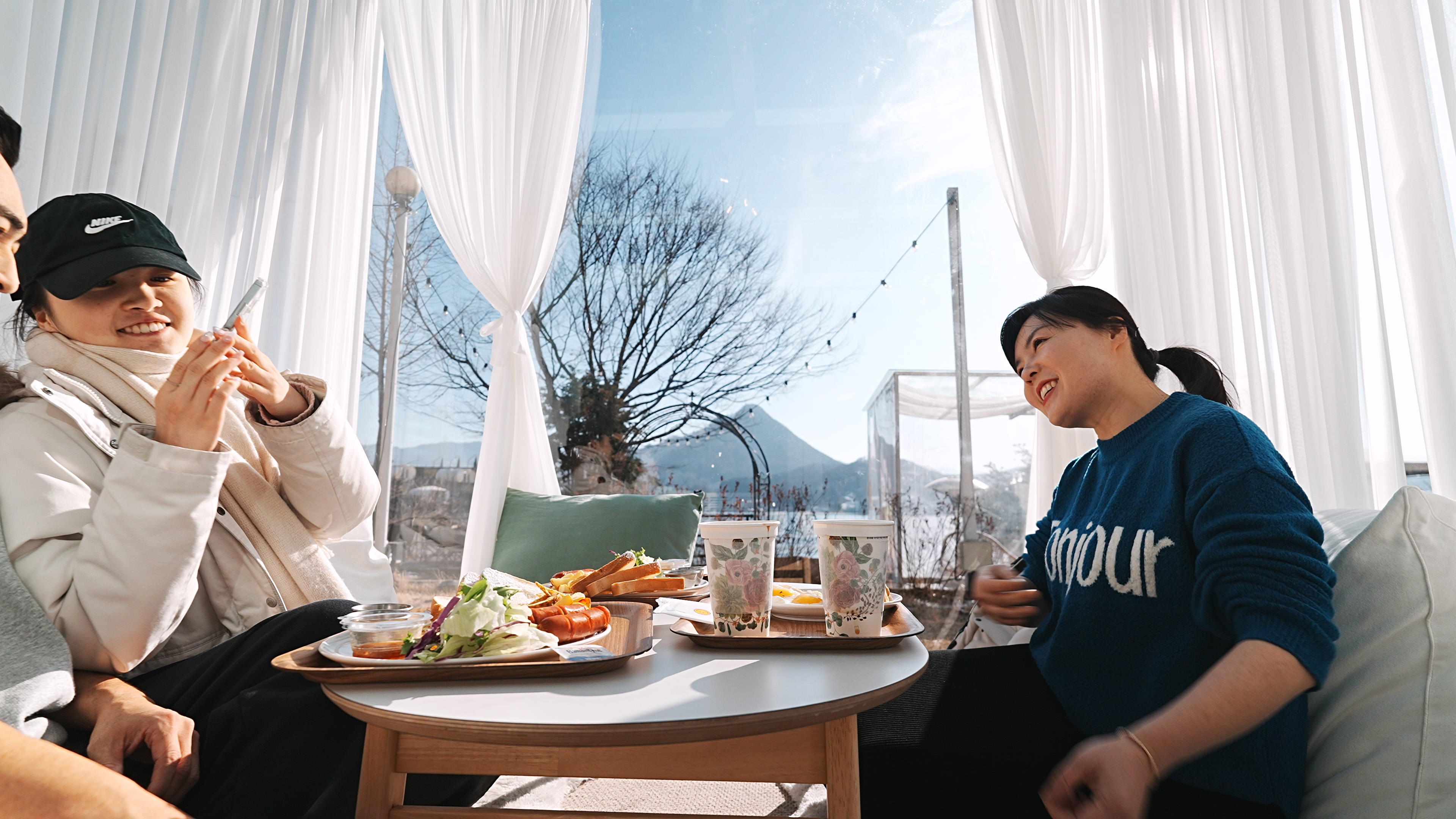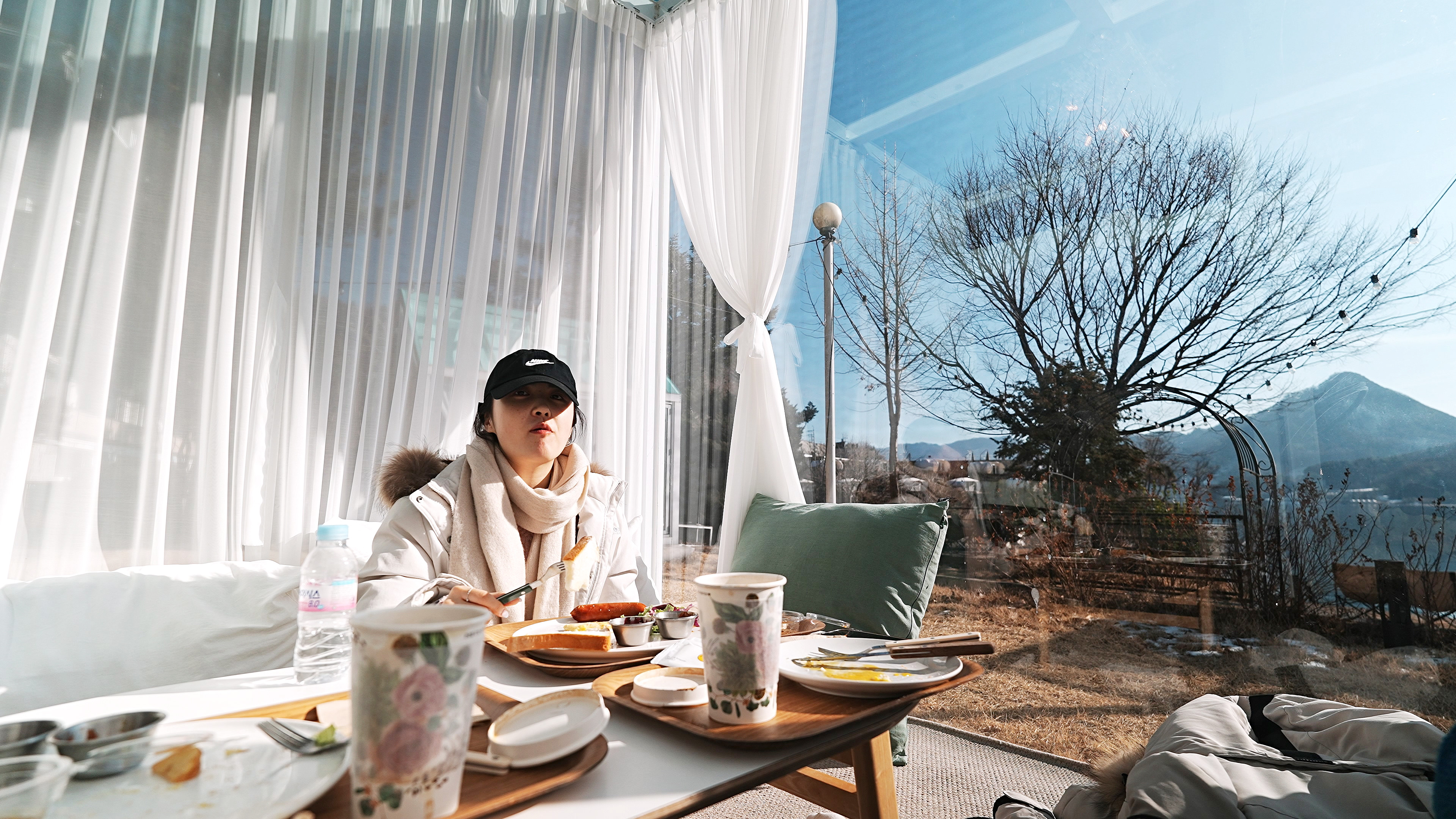 카페 길을 건너가면 글라스 큐브라고 해서, 호수가 바라보이는 곳에 유리로 만든 공간이 몇개 있는데, 거기서 브런치나 커피를 마실수 있게 되어 있었다.