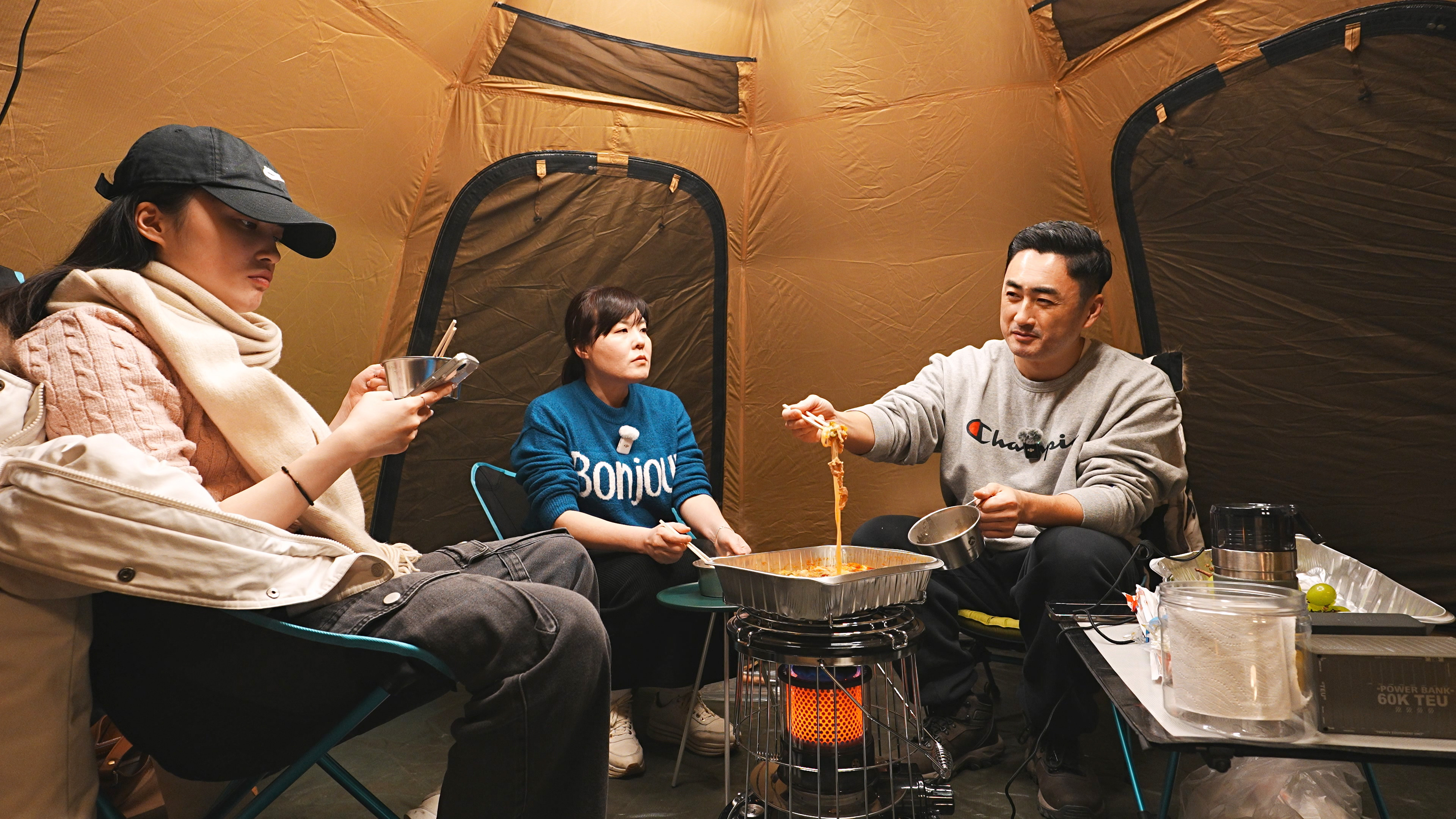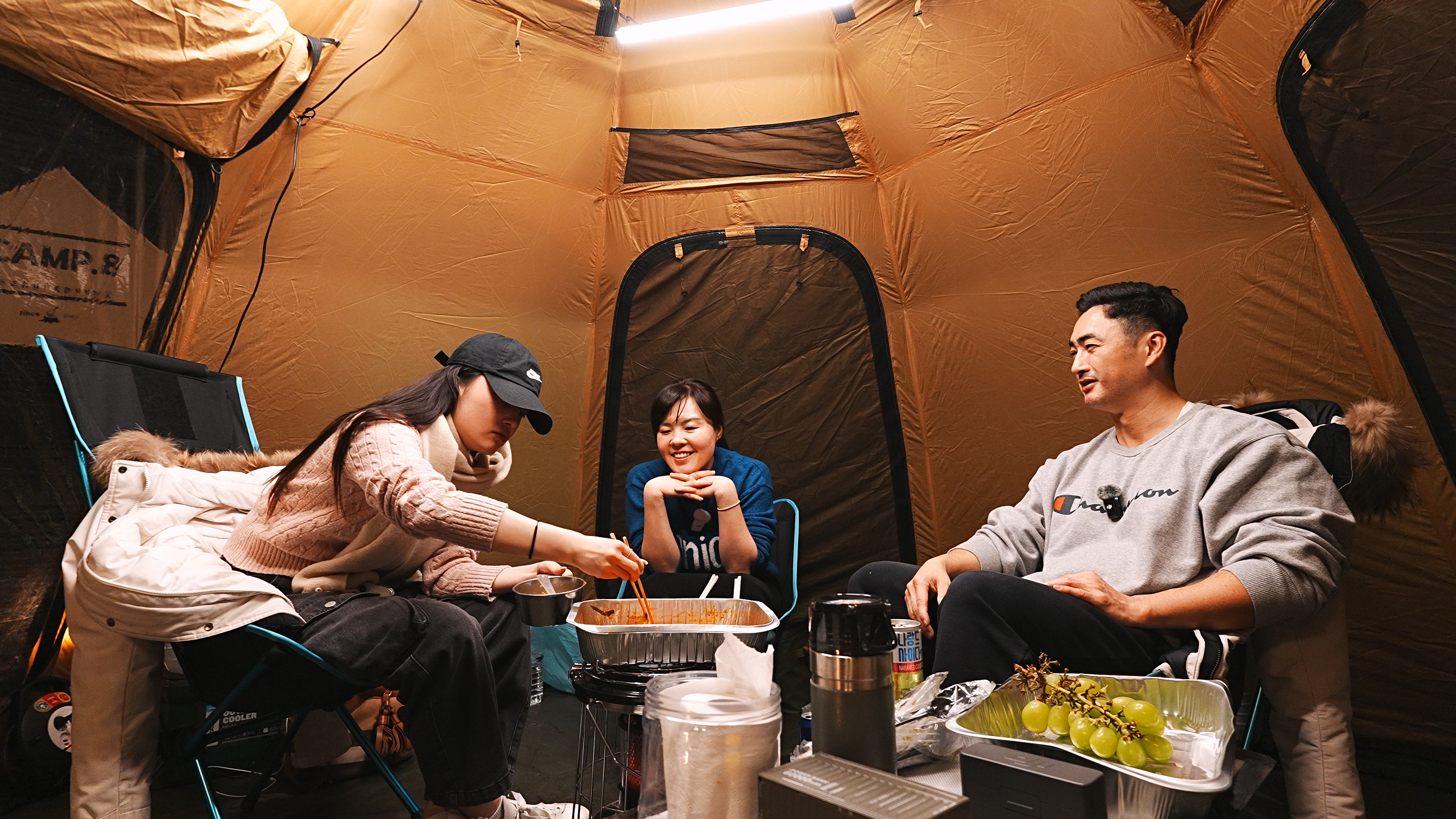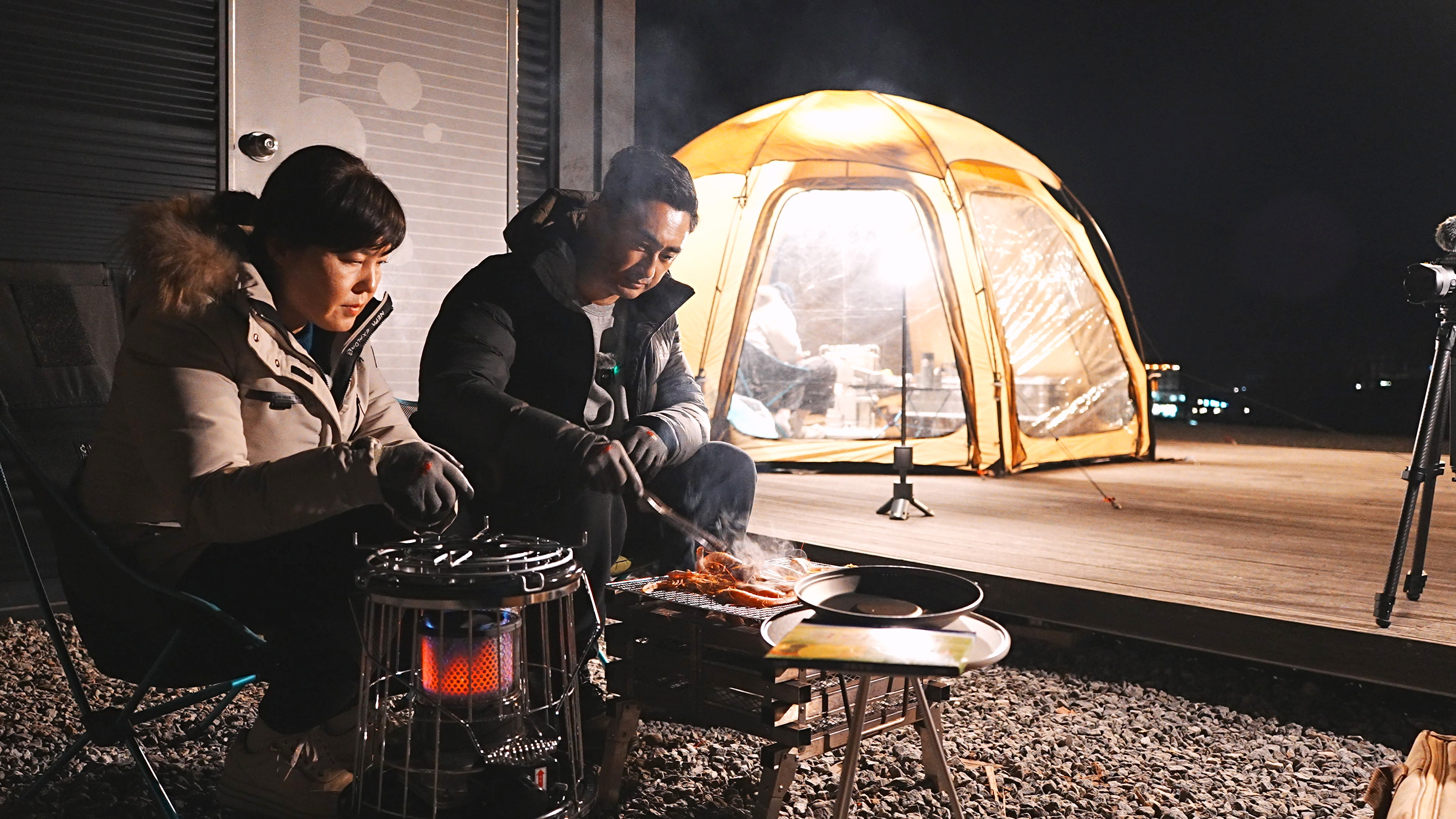 난로 한대가 텐트 안을 후끈후끈 달군다. 오랜만에 캠핑을 같이 따라온 딸과 평소에 하지 못한 얘기 하느라 시간 가는줄 모른다.