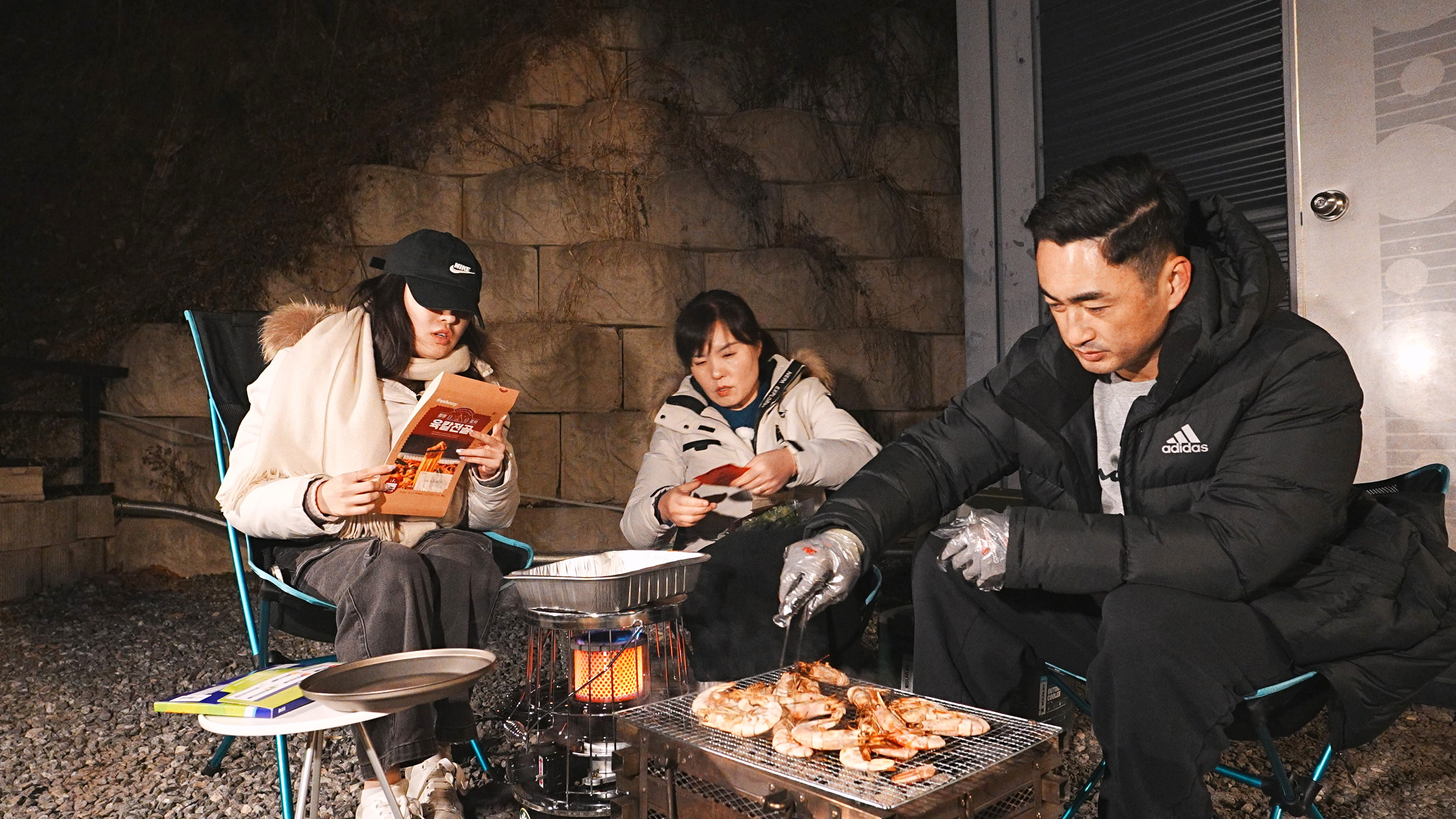저녁식사는 새우구이와 전골