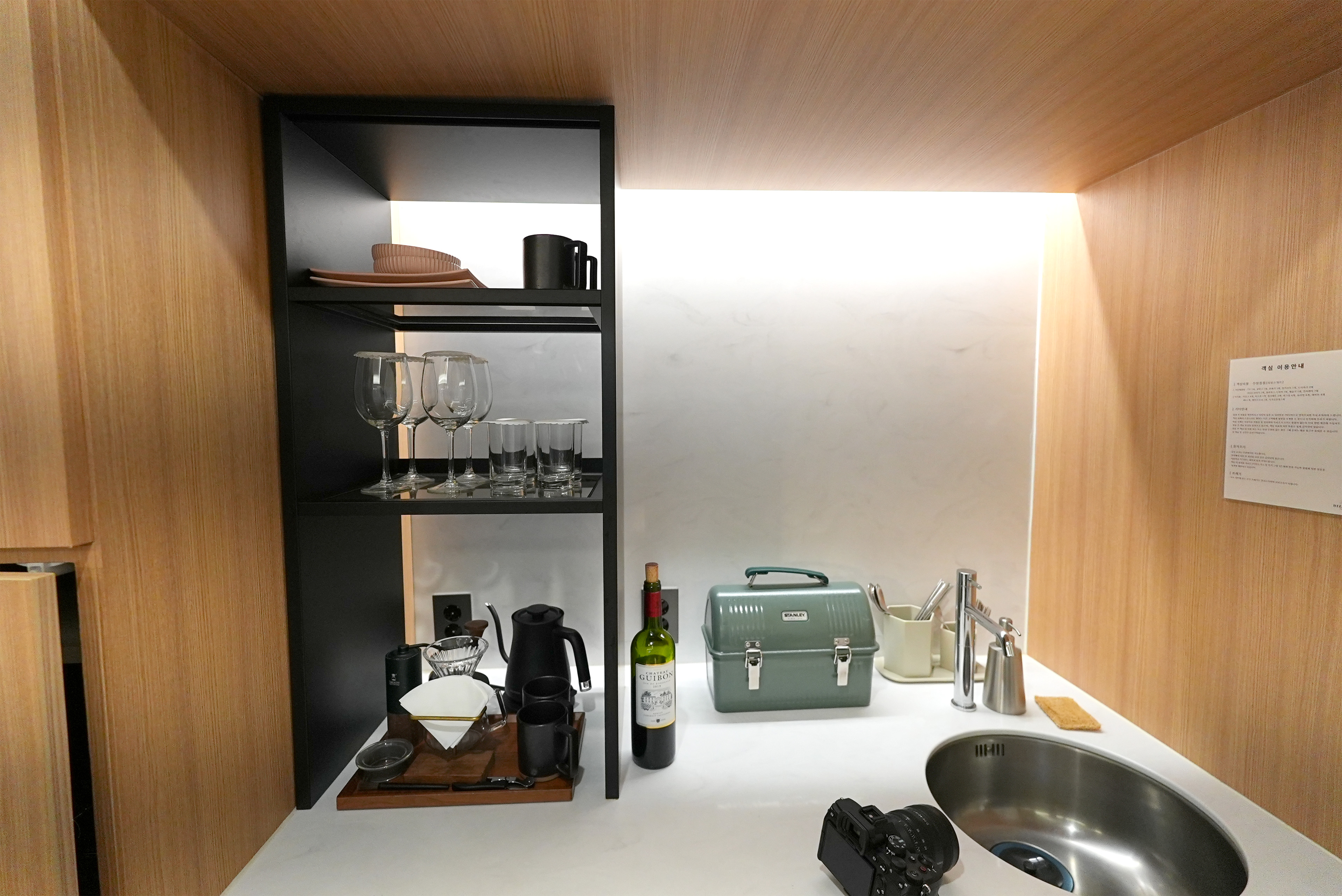 취사는 할 수 없었지만, 간단한 음료를 마실수 있고 원두커피가 제공되어 커피를 마실수 있게 되어있다.