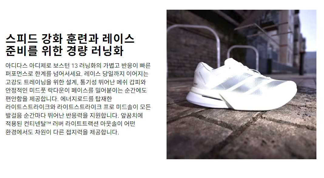 이전 부서 모임 곗돈으로 장만한 아디다스 러닝화를 신고 30분 달리기 연습을 했다. 신발의 중요성을 다시 한번 실감하며 다른날과 다르게 아주 가볍게 30분 운동을 마쳤다. 진짜 가볍고 쿠션감 짱 좋고. 아디제로 보스턴 13. 1년 365일 세일 안한다해서 온라인이 아닌 오프라인 매장에서 에누리 없이 구매. 179,000원. 몸무게가 55킬로그램대로 들어오면 러닝룩도 장만하고 싶다.