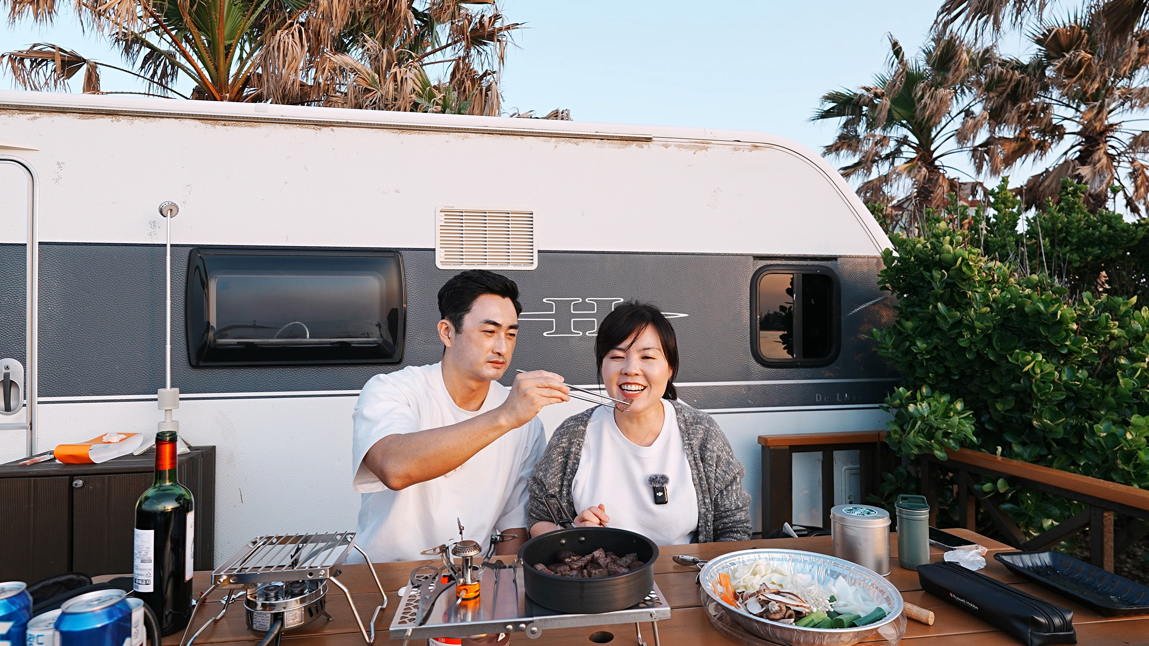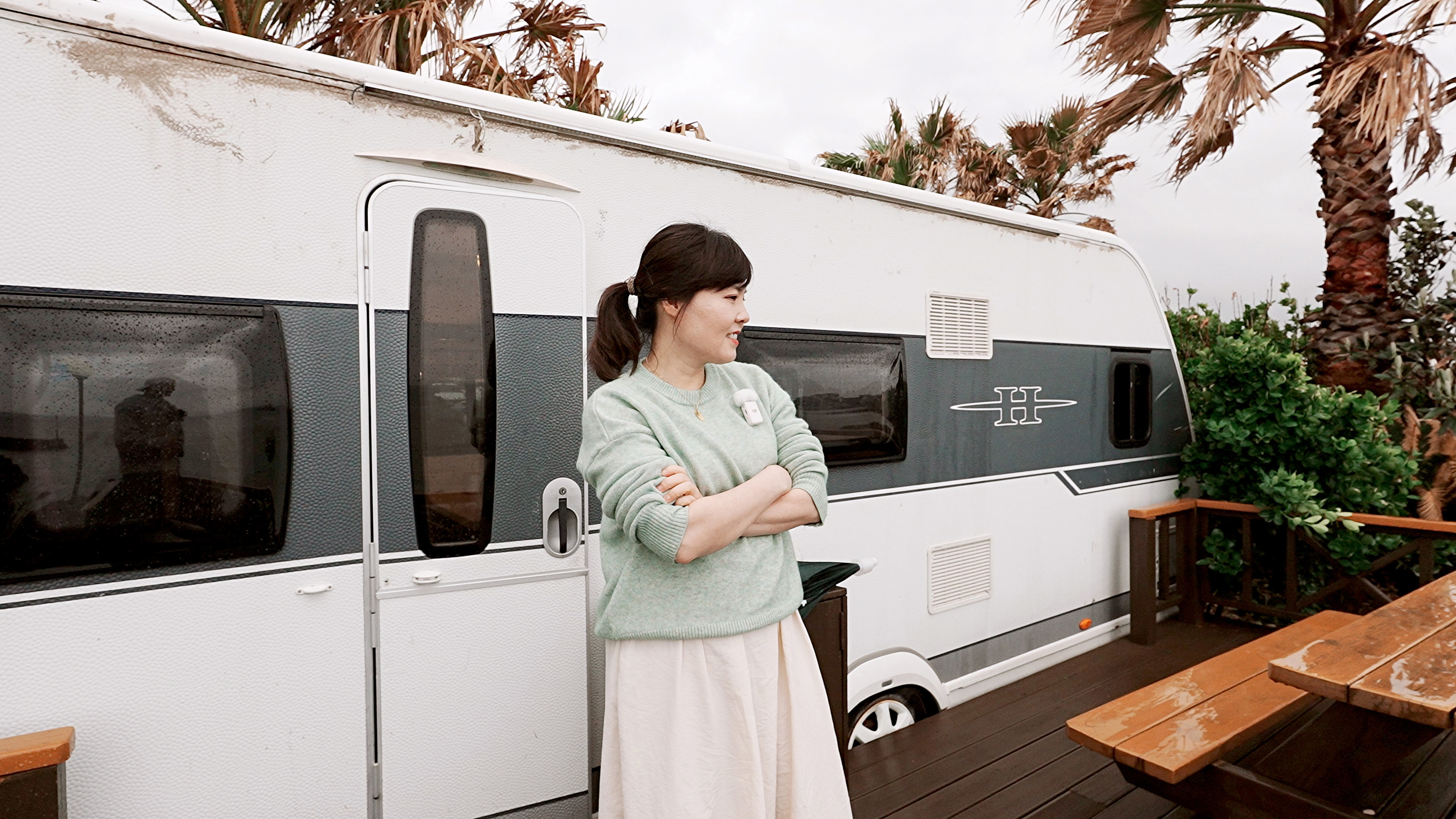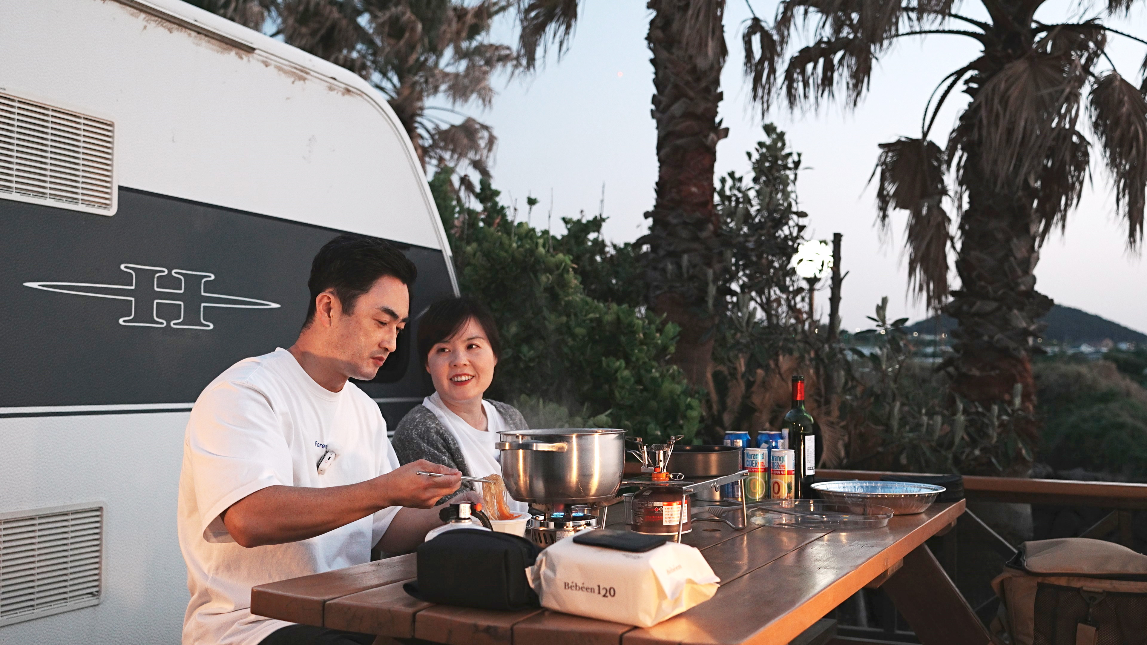 카라반 앞에는 식탁이 있어서 여기서 오션뷰를 즐기면서 식사를 할 수 있다.