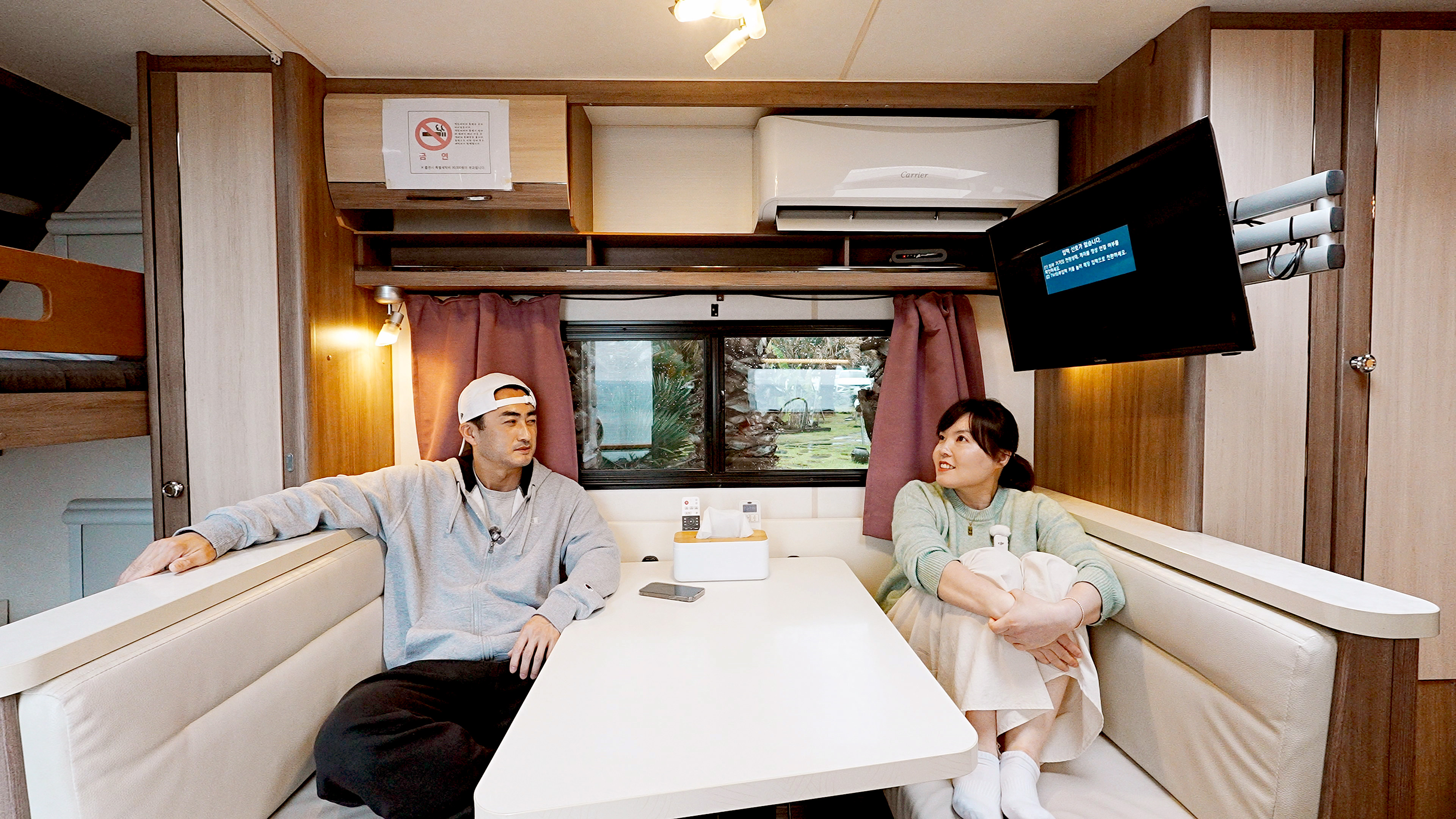 카라반에서 지내는 동안에는 거의 이 공간에서 생활하게 된다.