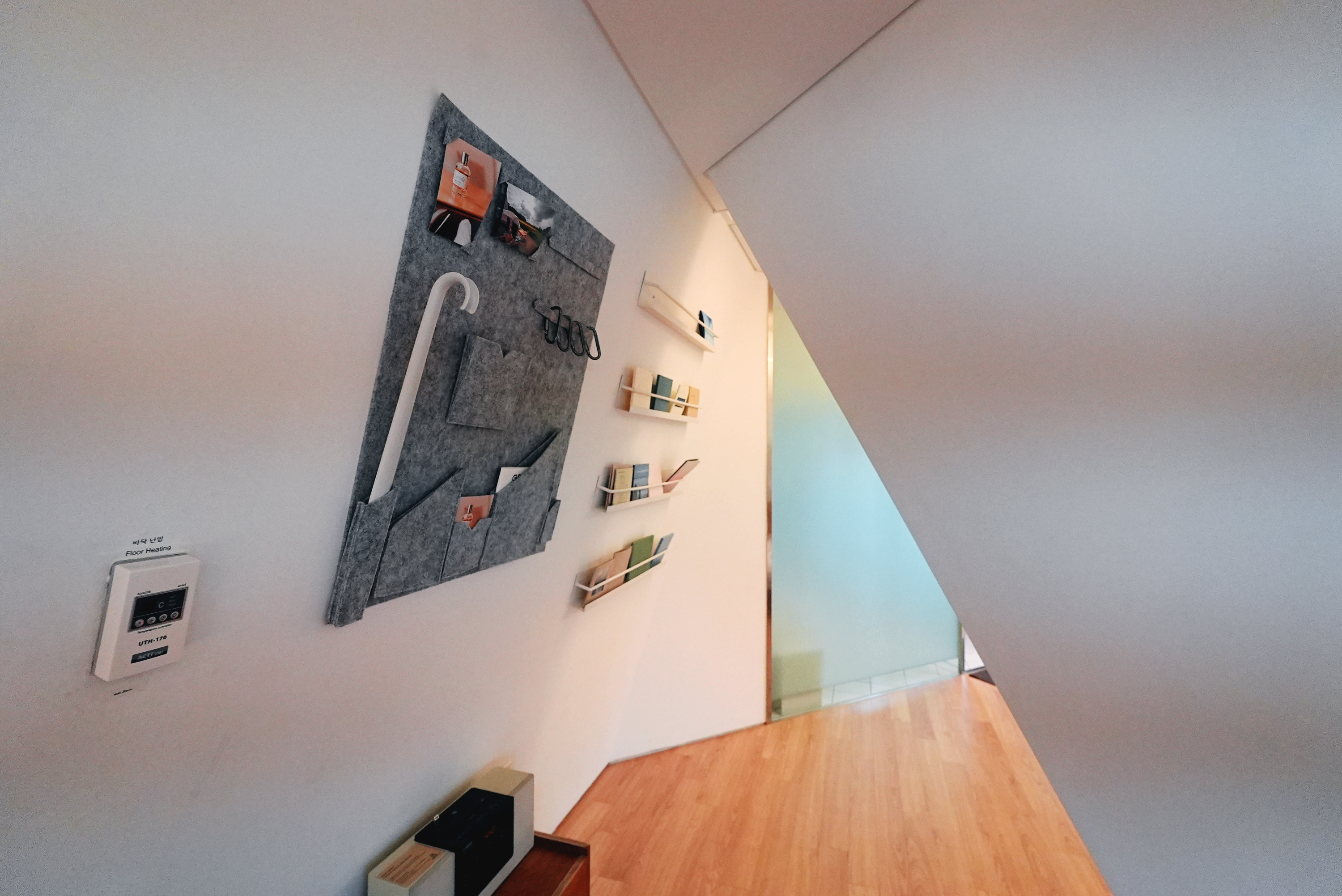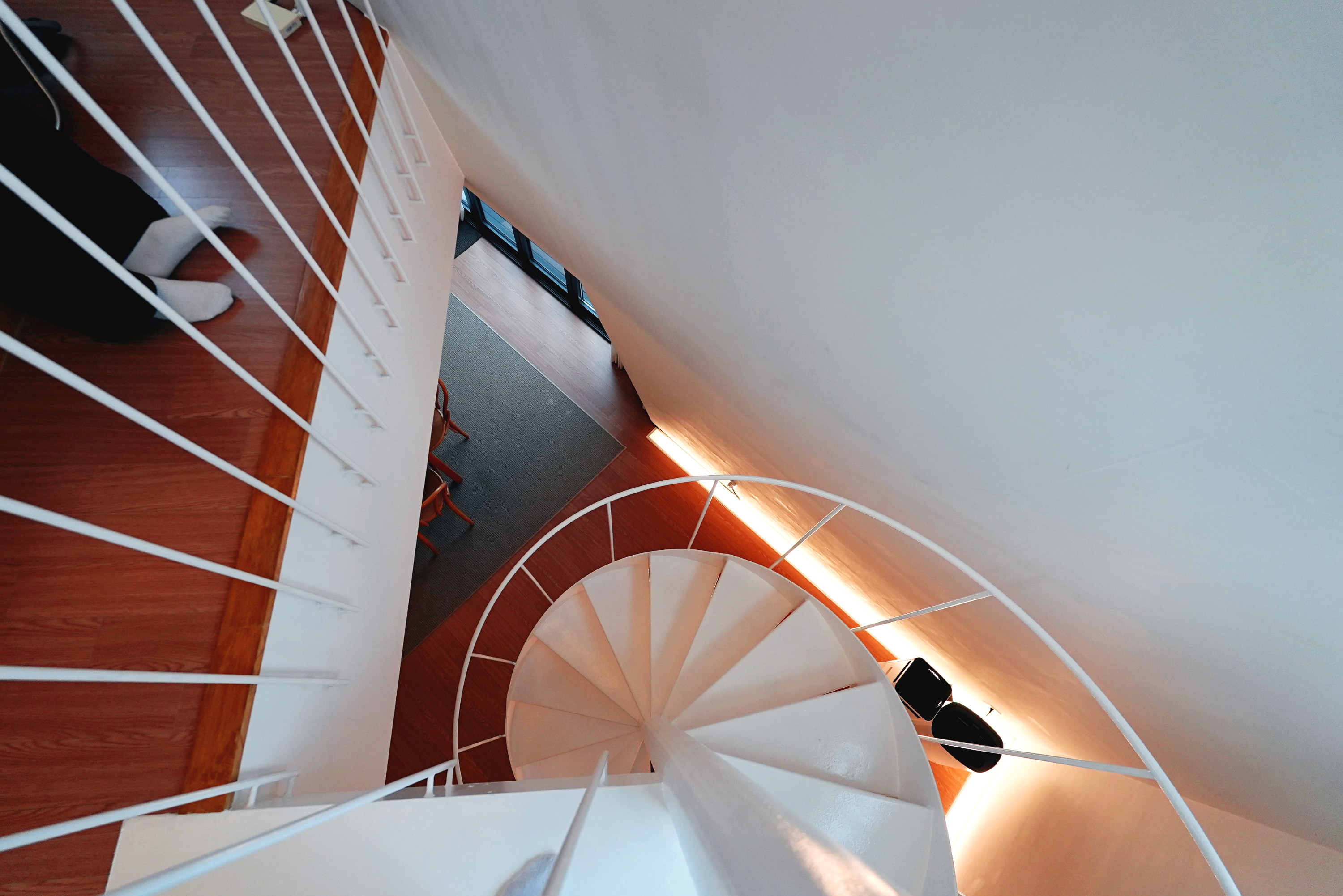 1층의 창문을 열면 테라스로 나갈수 있고, 2층으로는 회전계단을 이용해서 올라가는 형태.