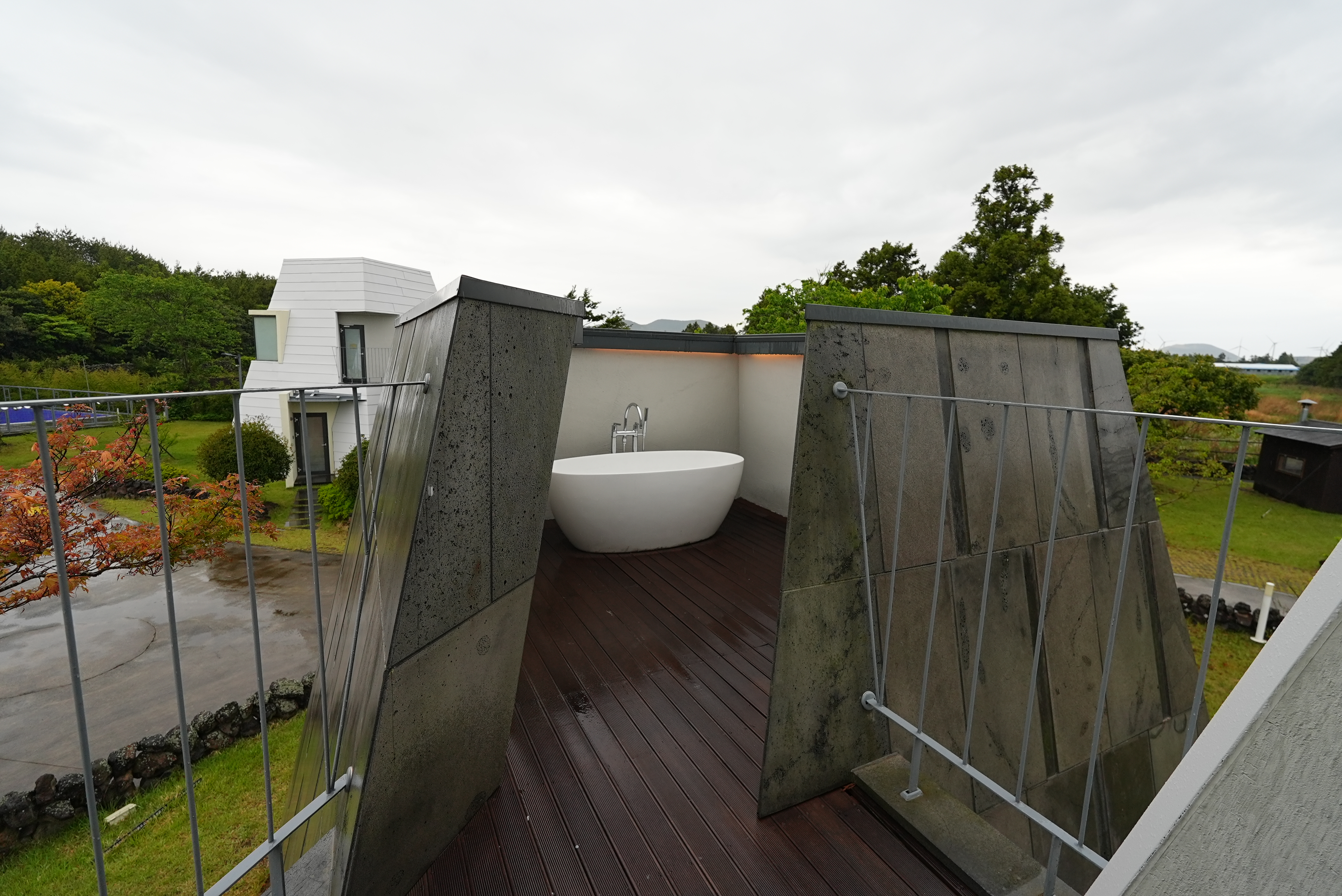 2층 문을 열고 야외로 나가면 이렇게 야외에서 이용할 수 있는 욕조가 있다.