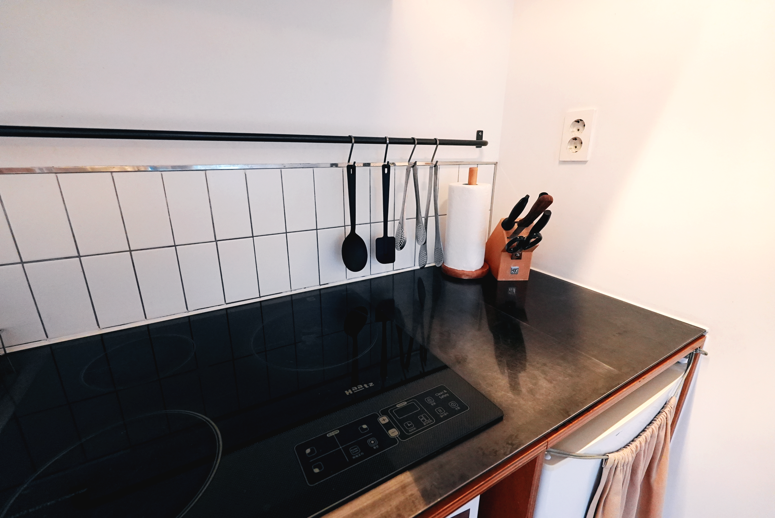 1층의 취사시설. 냄새를 유발하는 음식은 실내에서 취사를 하지 않도록 안내하고 있었다.