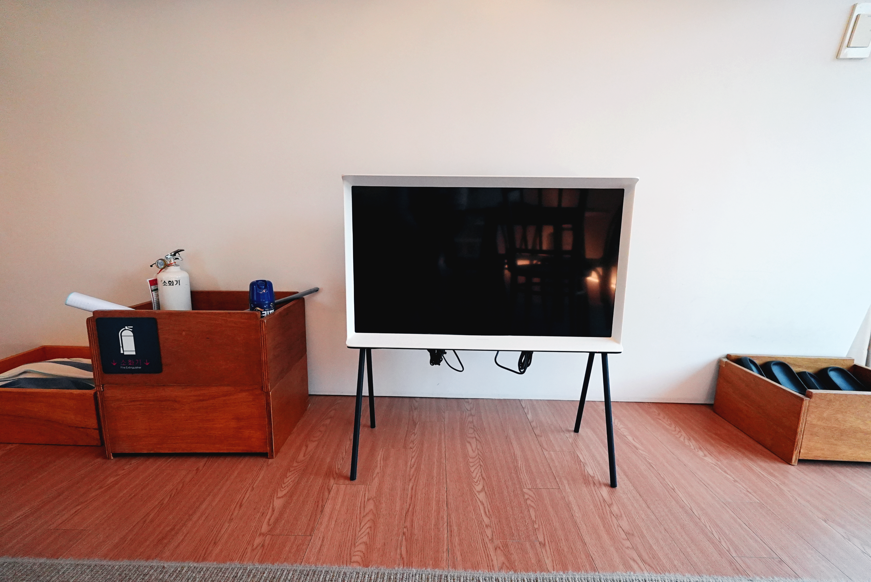 1층에 있는 티비. 숙박하는 동안 한 번도 안 켜본 듯