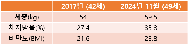 5월 22일(61.5kg)부터 다이어트 중. 5월 초에 다녀온 제주도 여행 사진이랑 영상을 보는데, 정말 몸매가 심각한 것 같다. 나이 50에 지금이 아니면 더이상 다이어트 하기도 어려울 것 같고, 이대로 고착될 것 같다는 두려움에 다이어트를 시작했다. 9월 30일에 건강검진이 예정되어 있어 그때까지 몸무게 51kg 만드는 것이 최종 목표!!!
