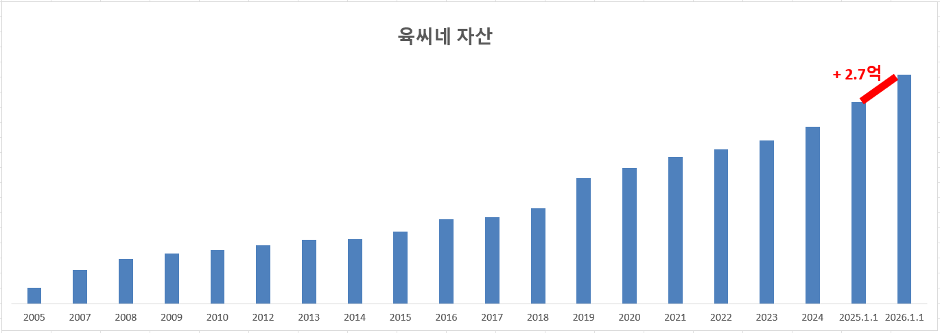 2025년에는 전년대비 2억7천1백만원의 자산이 증가하였다. (신랑 주식 제외)