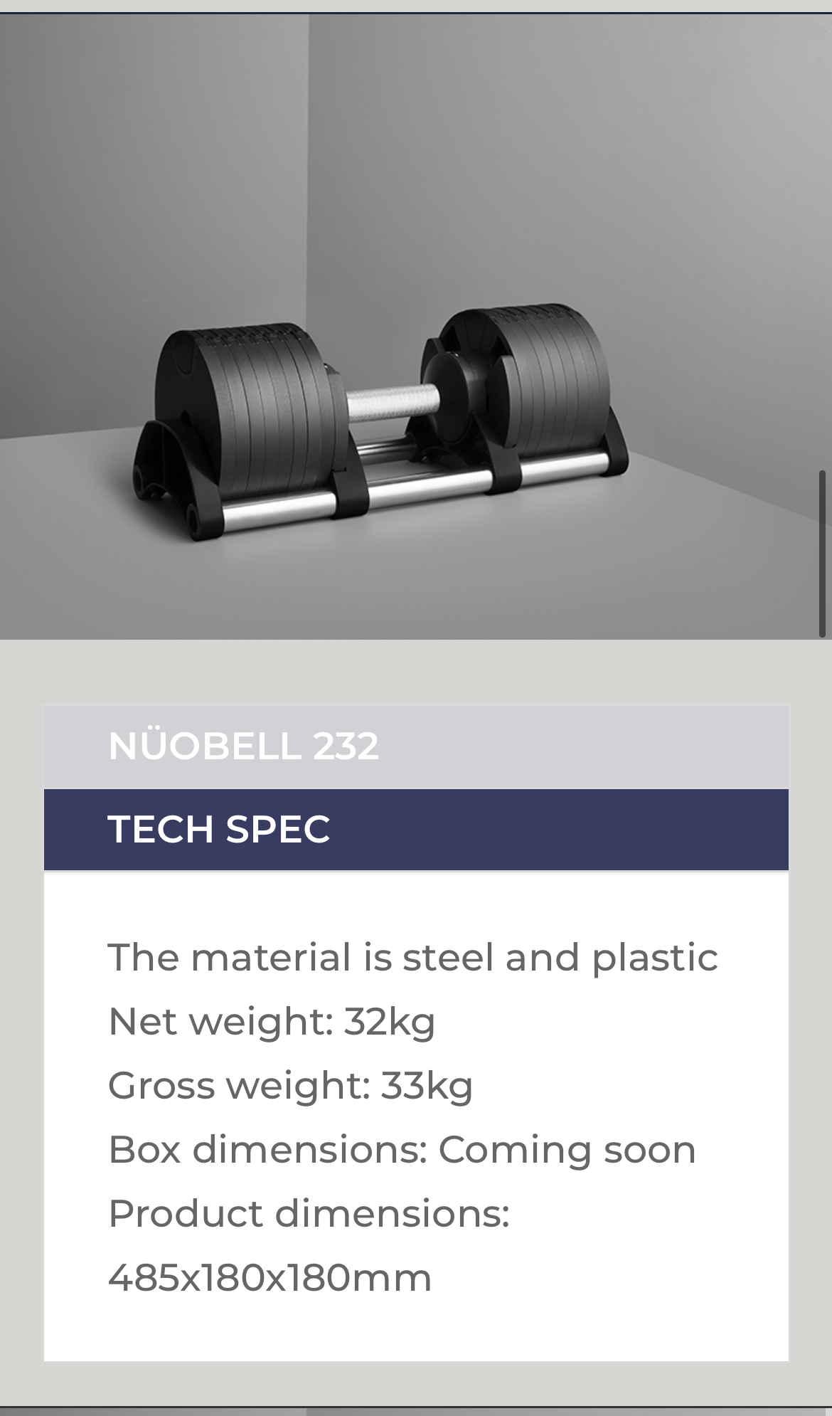 그래서 구입한 제품은 스웨덴 누오 사의 무게조절 덤벨로 32kg 짜리.