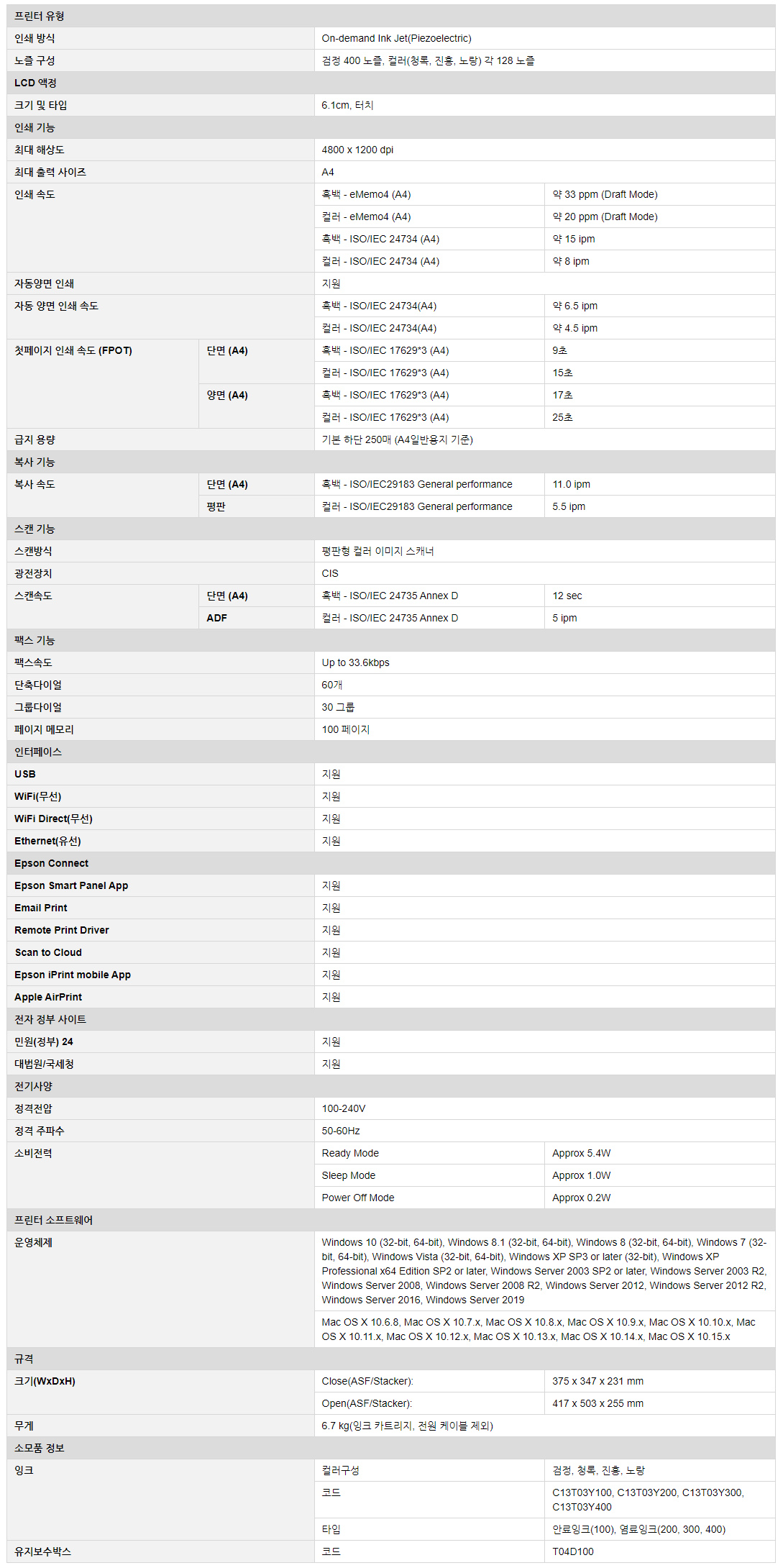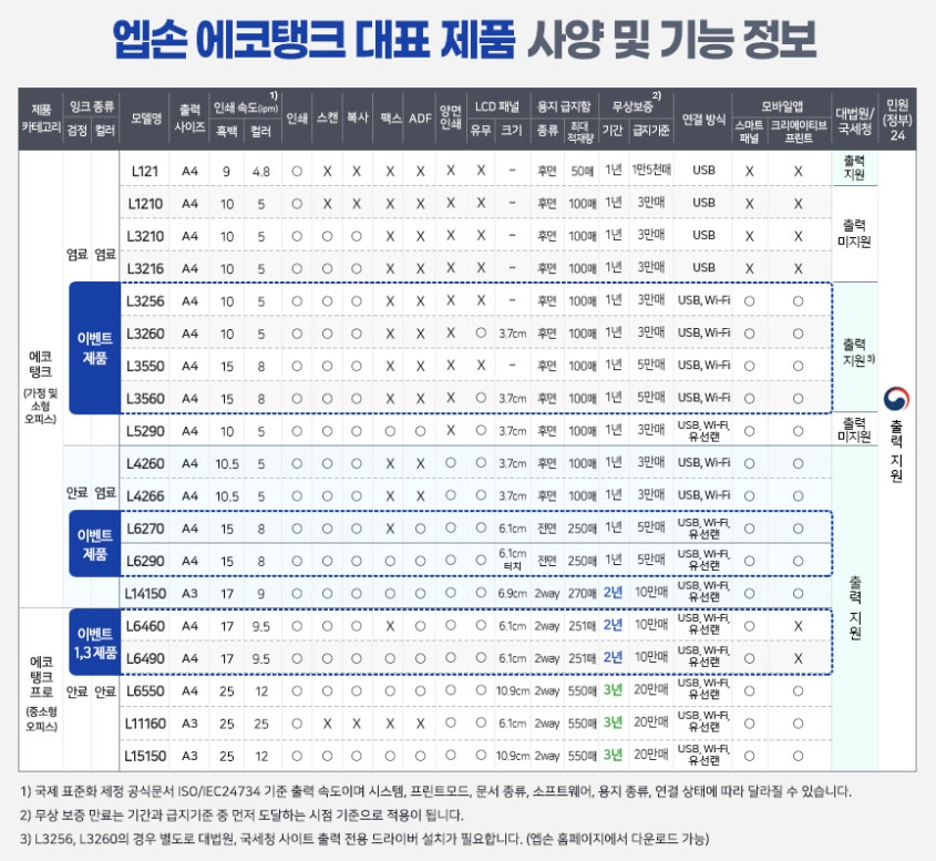 구매하고 보니, 기존에 사용하던 프린터(L4150) 와 같은 잉크를 쓰는 기종이다. 이 제품은 정품무한잉크라고 해서, 엡슨에서 나오는 정품 잉크를 저렴하게 리필해서 사용할 수 있는 기종이다.